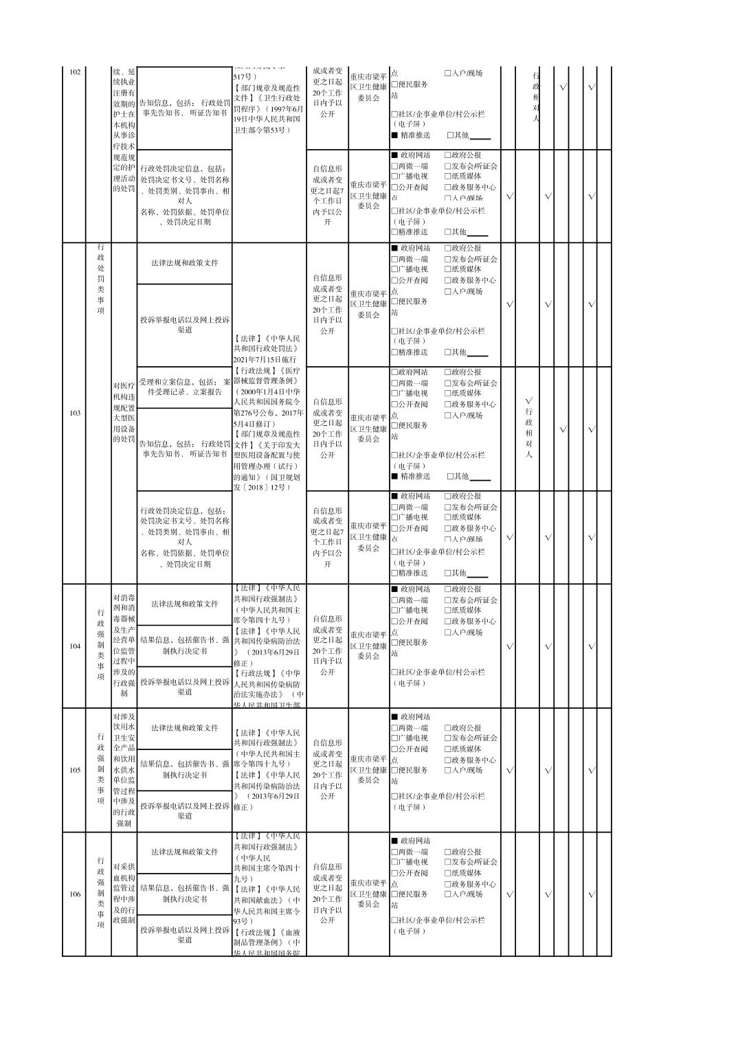 重慶市梁平區(qū)衛(wèi)生健康領(lǐng)域基層政務(wù)公開標(biāo)準(zhǔn)目錄