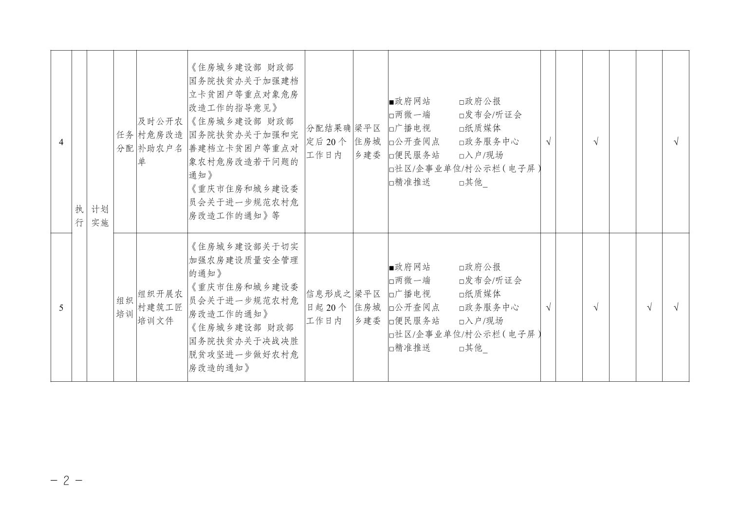重慶市梁平區鄉鎮(街道)農村危房改造領域基層政務公開標準目錄