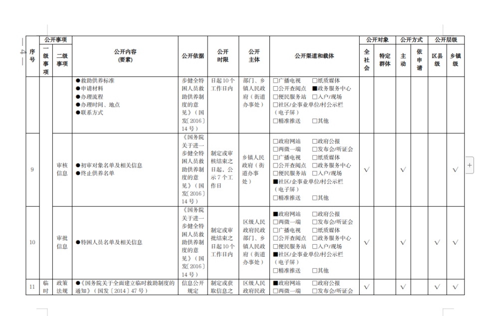 重慶市梁平區社會救助領域基層政務公開標準目錄