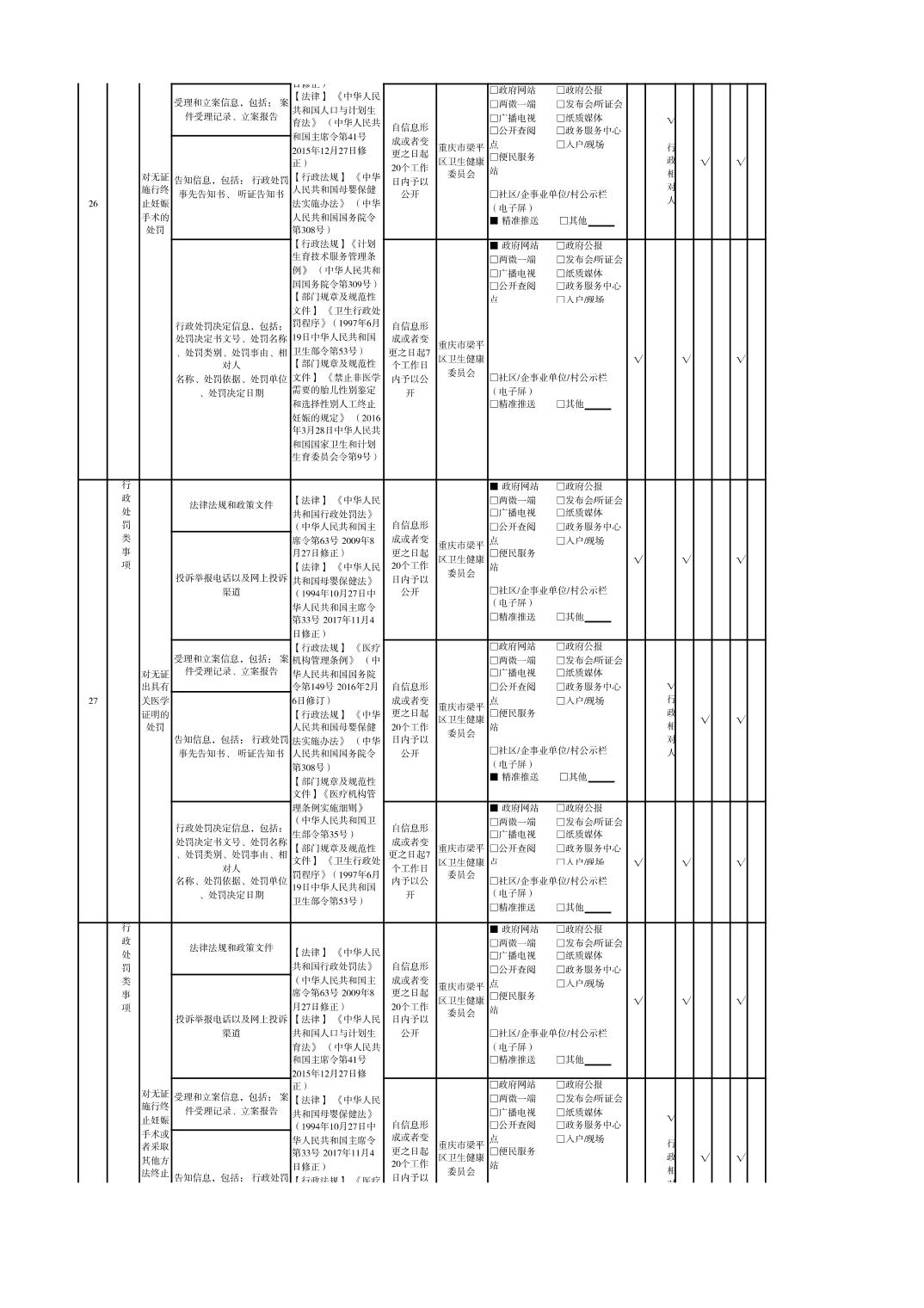 重慶市梁平區衛生健康領域基層政務公開標準目錄