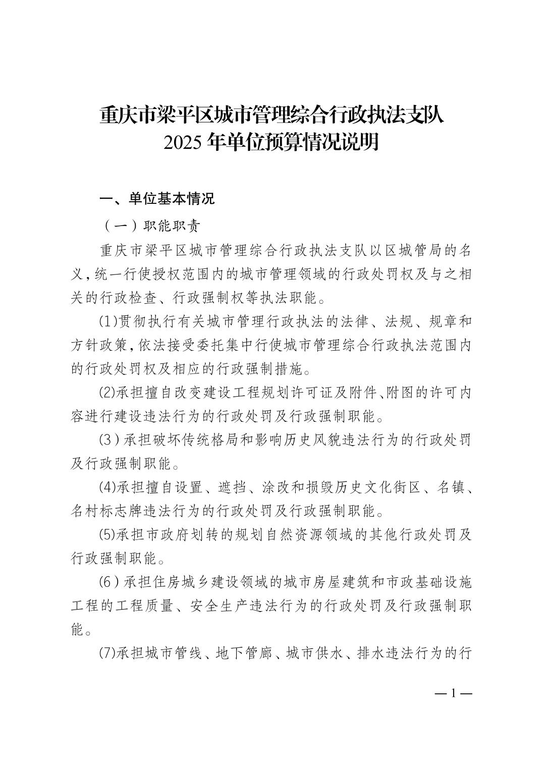 | 標題 | 重慶市梁平區城市管理綜合行政執法支隊2025 年單位預算情況說明 | ||