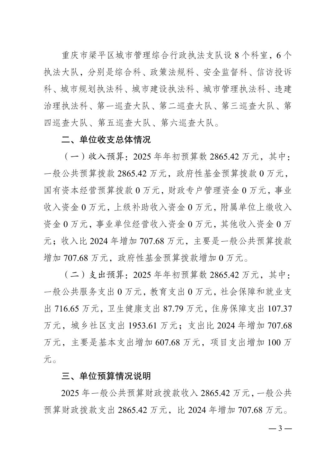 | 標題 | 重慶市梁平區城市管理綜合行政執法支隊2025 年單位預算情況說明 |