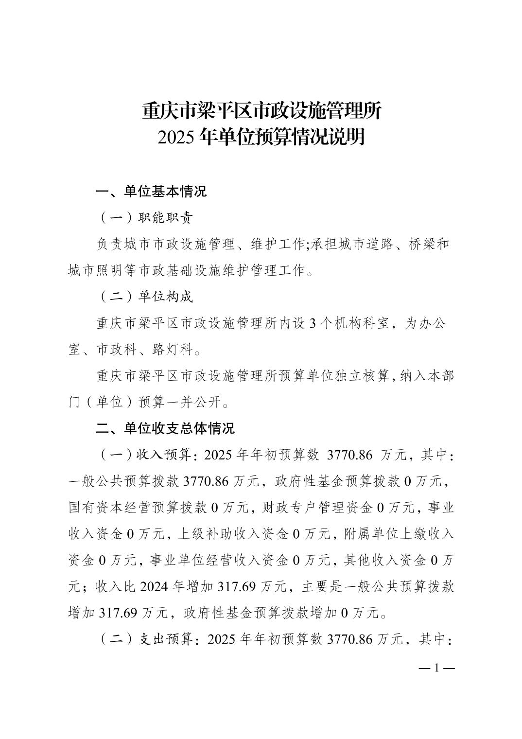 標(biāo)題 重慶市梁平區(qū)市政設(shè)施管理所2025 年單位預(yù)算情況說明