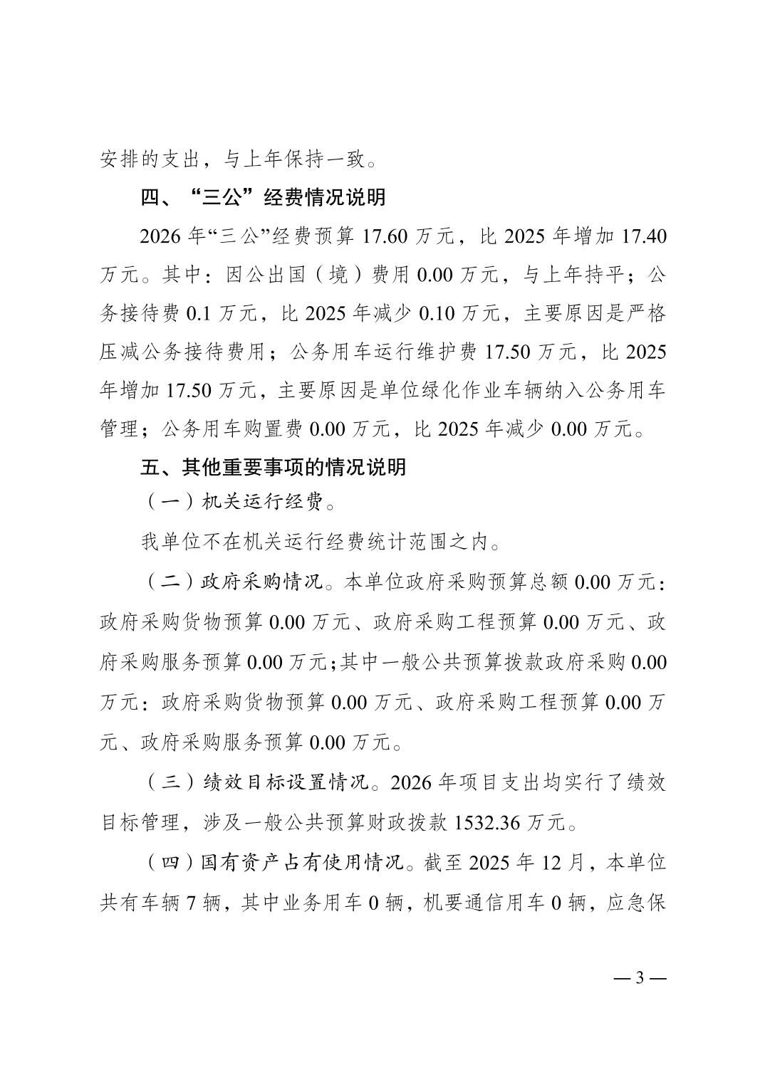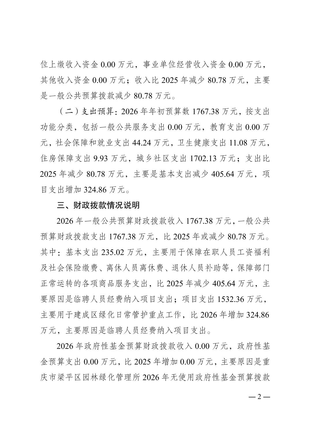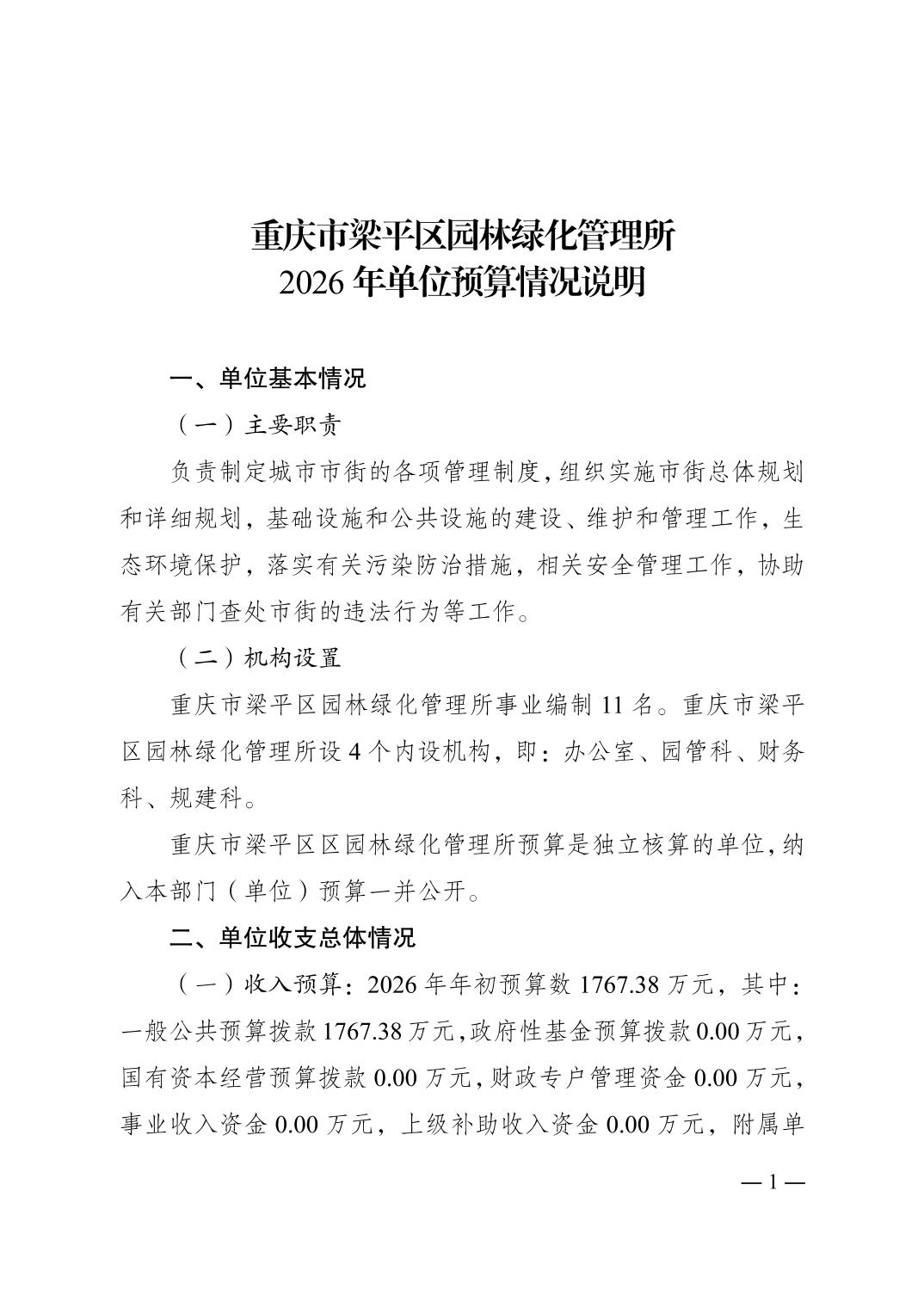 標(biāo)題 重慶市梁平區(qū)園林綠化管理所2026年單位預(yù)算情況說明