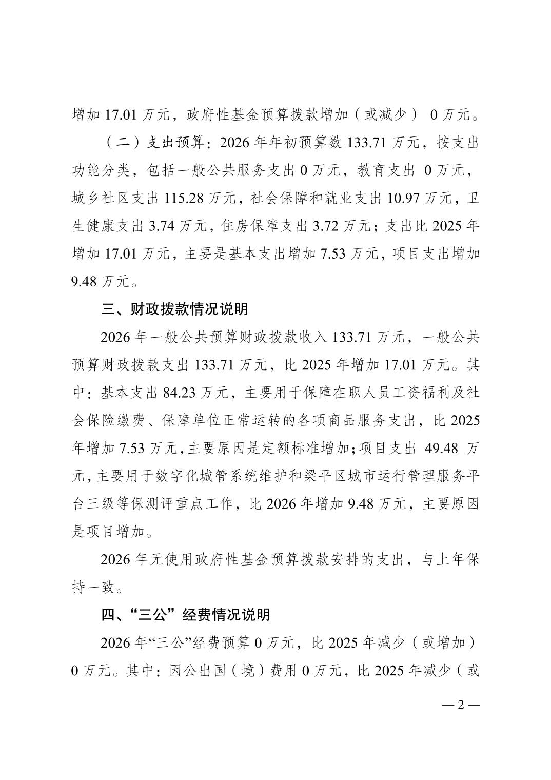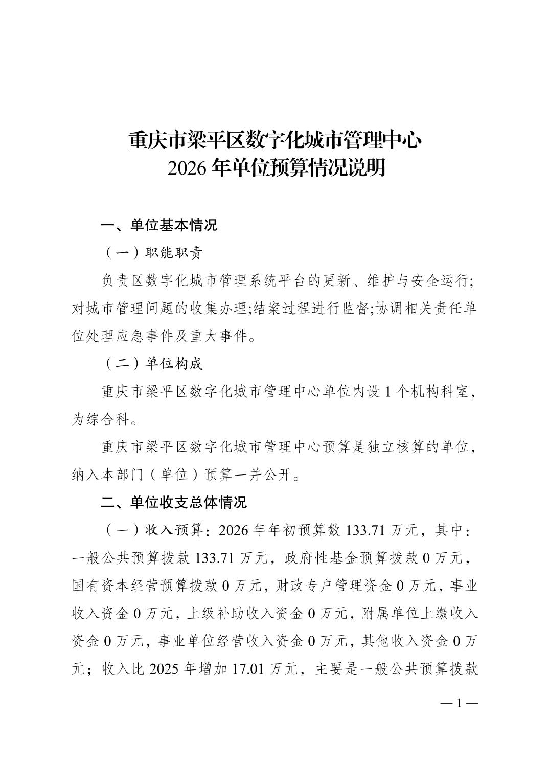 標題 重慶市梁平區(qū)數(shù)字化城市管理中心2026年單位預算情況說明
