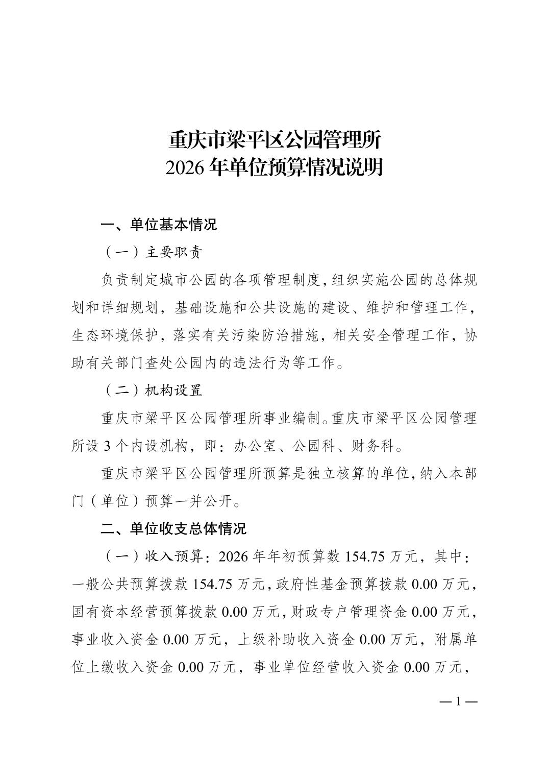 標題 重慶市梁平區公園管理所2026年單位預算情況說明