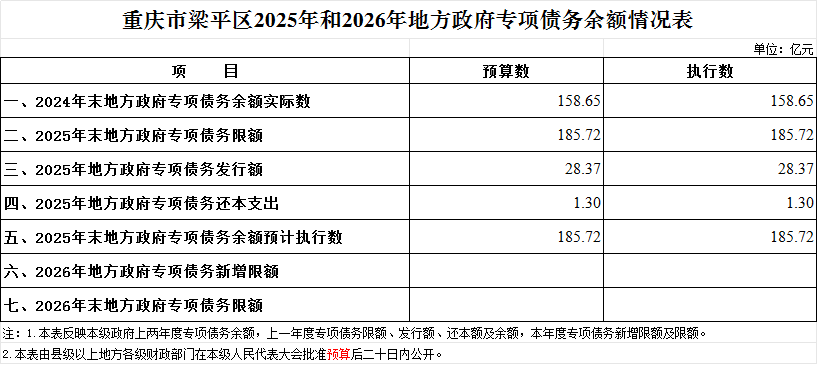 標題 重慶市梁平區2025年和2026年地方政府專項債務余額情況表