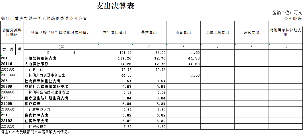 (九)基本支出:指為保障機(jī)構(gòu)正常運(yùn)轉(zhuǎn)、完成日常工作任務(wù)而發(fā)生的人員經(jīng)費(fèi)和公用經(jīng)費(fèi)。其中:人員經(jīng)費(fèi)指政府收支分類經(jīng)濟(jì)科目中的“工資福利支出”和“對(duì)個(gè)人和家庭的補(bǔ)助”;公用經(jīng)費(fèi)指政府收支分類經(jīng)濟(jì)科目中除“工資福利支出”和“對(duì)個(gè)人和家庭的補(bǔ)助”外的其他支出。