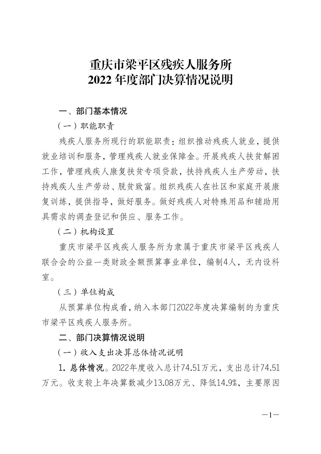 | 標題 | 重慶市梁平區殘疾人服務所2022年度部門決算情況說明 |