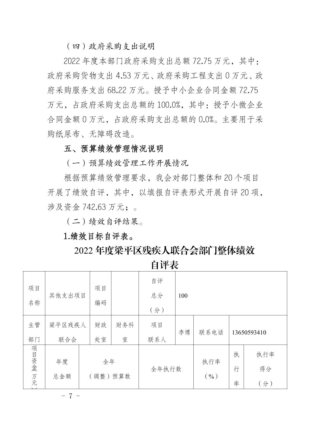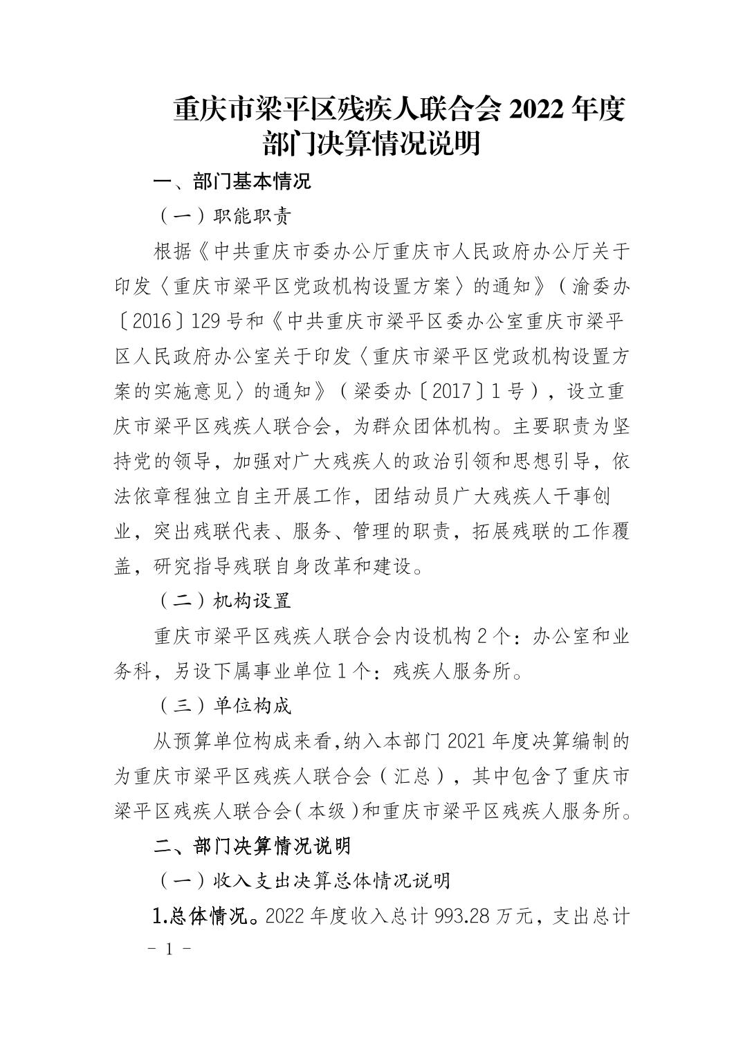 標題 重慶市梁平區殘疾人聯合會2022年度部門決算情況說明