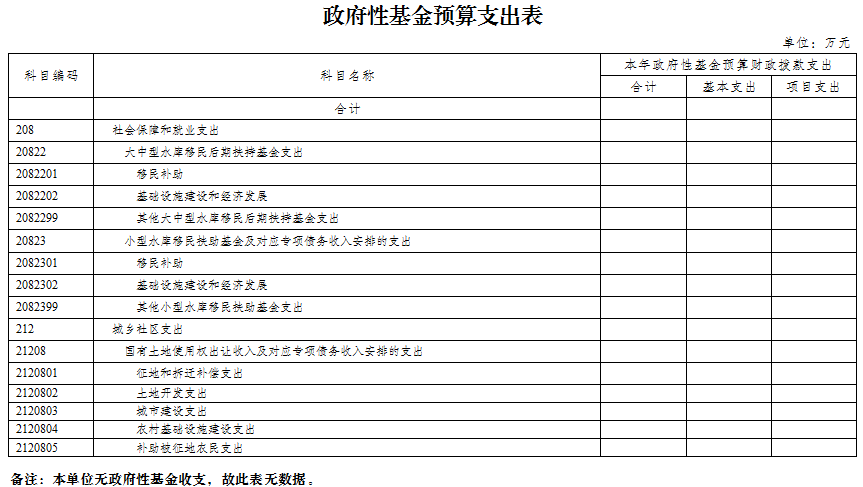 重慶市梁平區(qū)檔案局2019年未使用政府性基金預(yù)算撥款安排的支出。