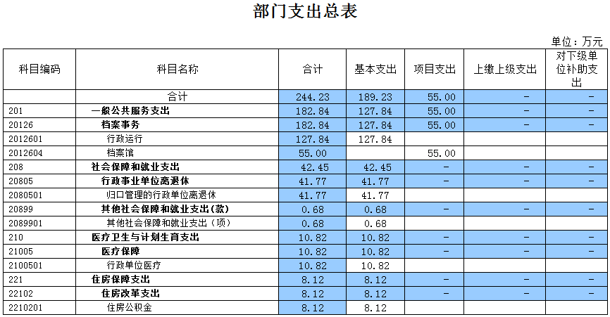 2017年一般公共預算財政撥款收入224.50萬元,一般公共預算財政撥款支出224.50萬元,比2016年增加8.83萬元。其中:基本支出169.50 萬元,比2016年增加8.83萬元,主要原因是調資,主要用于保障在職人員工資福利及社會保險繳費,離退休人員離退休費及生活補助,保障部門正常運轉的各項商品服務支出;項目支出55 萬元,與2016年持平,主要用于檔案保管保護、搶救、梁平年鑒編修等重點工作。