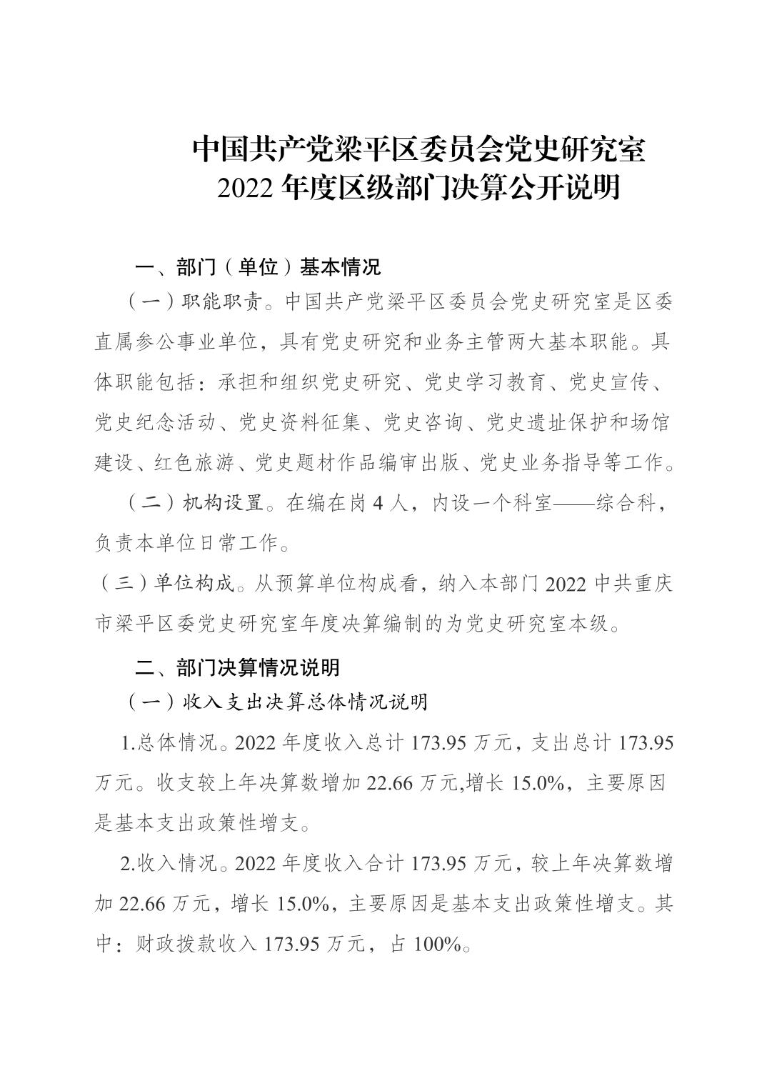 中國(guó)共產(chǎn)黨梁平區(qū)委員會(huì)黨史研究室 2022年度區(qū)級(jí)部門決算公開(kāi)說(shuō)明 |
