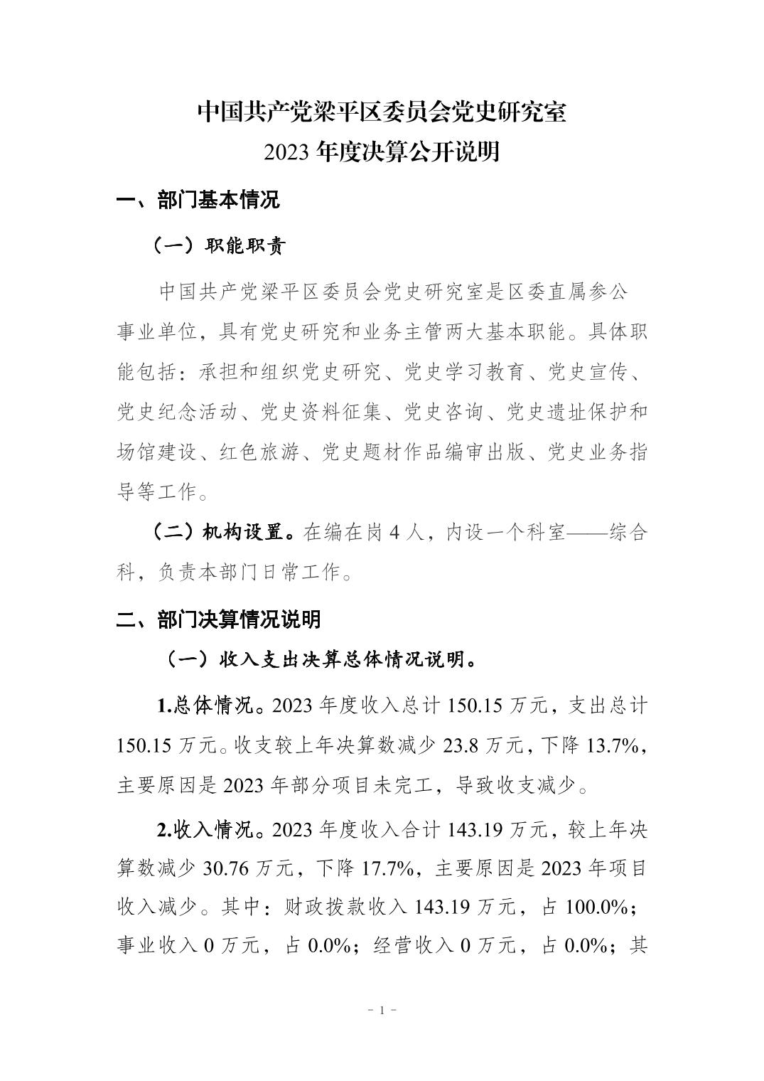 | 標題 | 中國共產黨梁平區委員會黨史研究室 2023年度決算公開說明 |