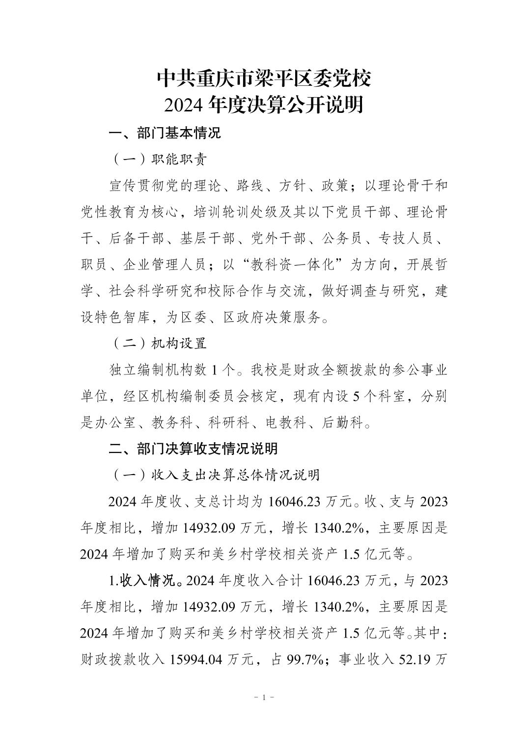 | 標題 | 中共重慶市梁平區委黨校2024年度決算公開說明 |