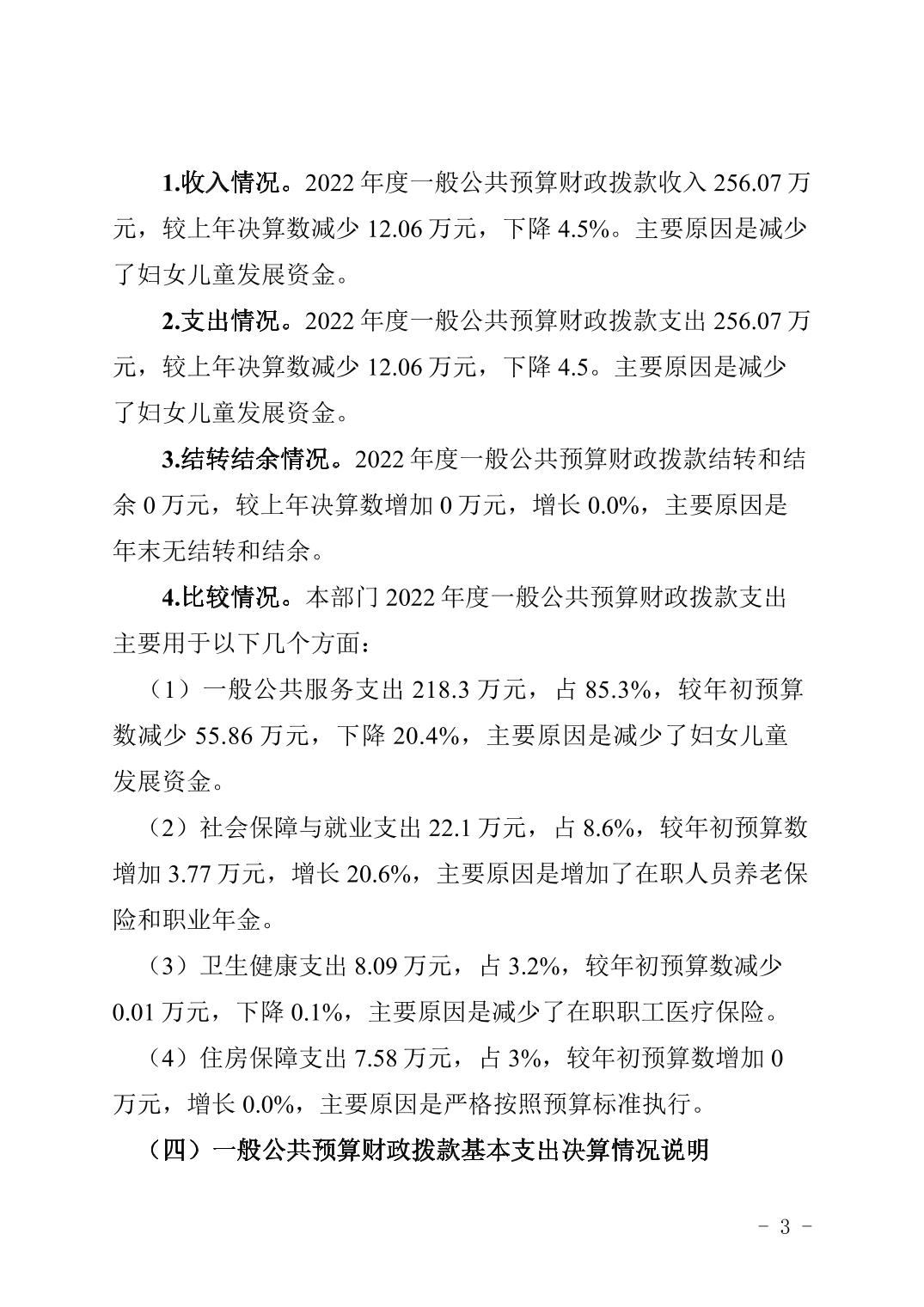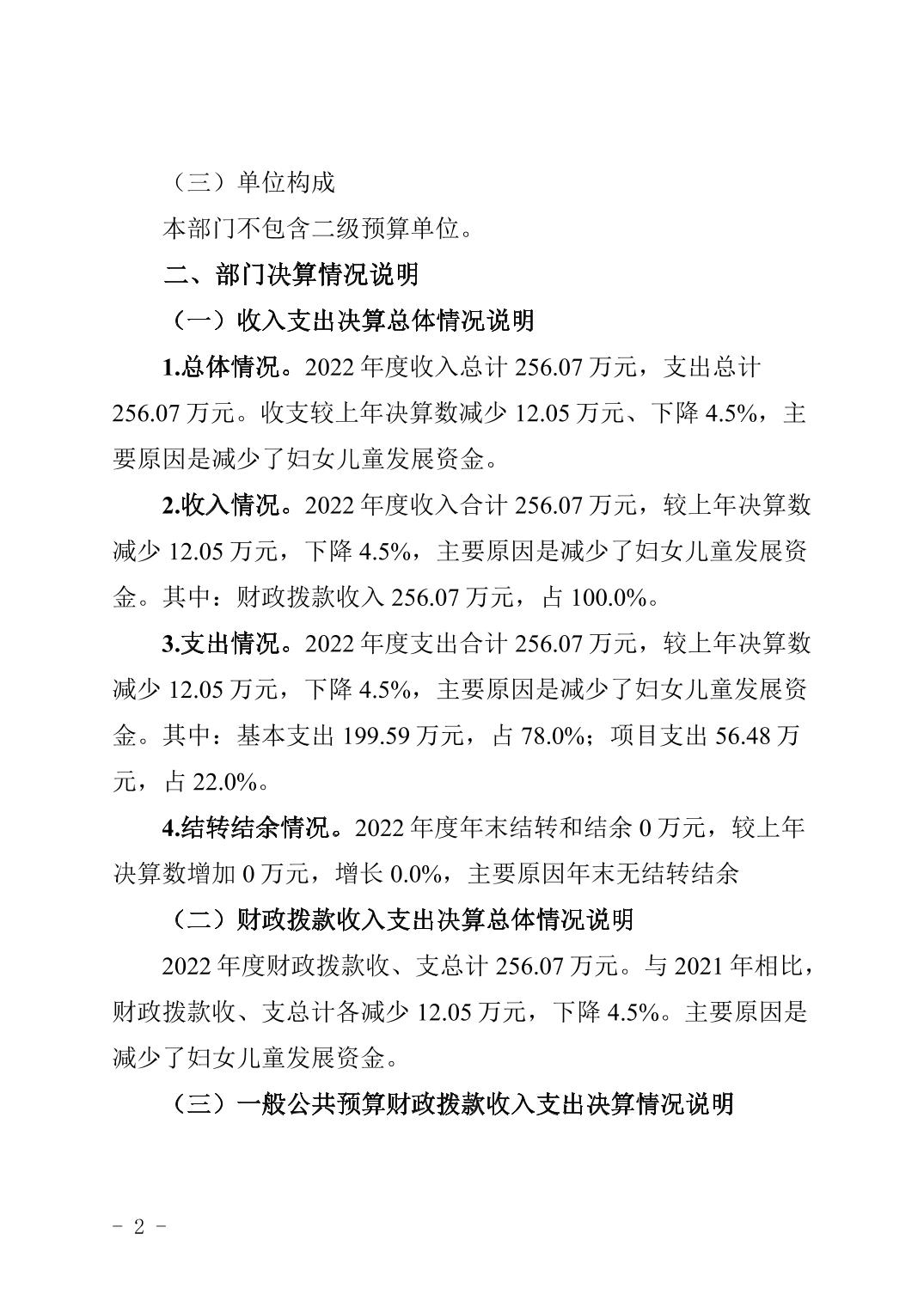 | 標題 | 重慶市梁平區婦女聯合會2022年度部門決算情況說明 |