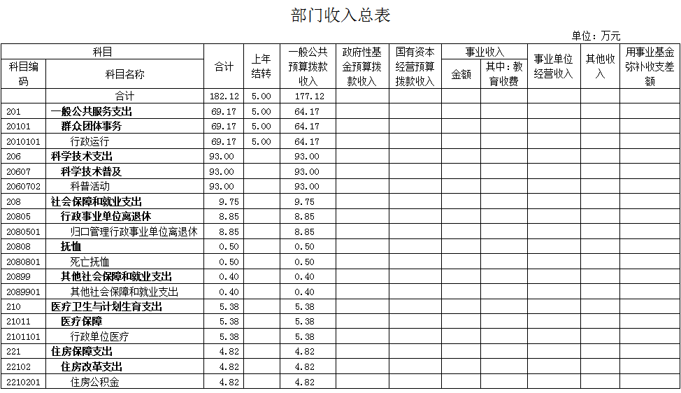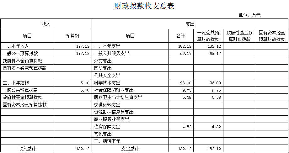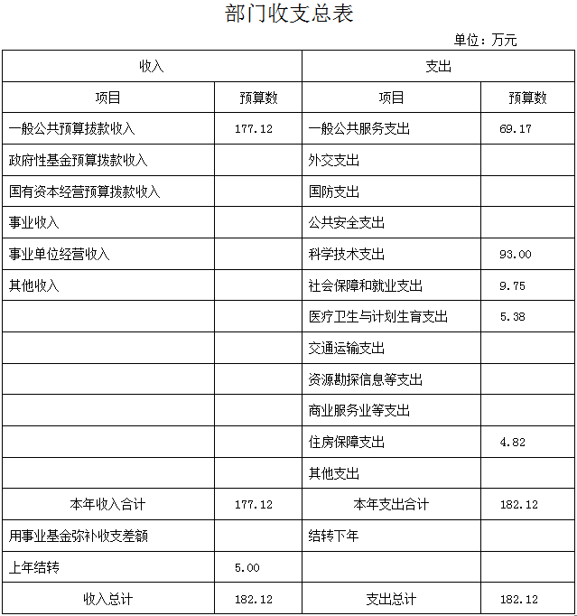 2017年本單位預算收入合計177.12萬元,其中:年初預算財政撥款177.12萬元(一般公共預算財政撥款177.12萬元)。加上上年結轉5.0萬元,可支配收入總計182.12萬元。本年支出合計182.12萬元。其中,財政預算撥款支出177.12萬元,按功能分類:一般公共服務支出69.17萬元,科學技術支出93萬元,社會保障和就業支出9.75萬元,醫療衛生和計劃生育支出5.38萬元,住房保障支出4.82萬元。公共預算財政撥款基本支出84.12萬元,按經濟分類:工資福利支出50.91萬元,商品和服務支出19.03萬元,對個人和家庭補助支出14.18萬元。財政預算撥款項目支出93萬元,主要用于院士專家工作站建設 、科學技術普及、青少年科技活動、創新驅動助力工程建設、企業數據信息推送、基層科普行動計劃項目儲備建設等。總預算收支與2016年相比,主要變化一是財政預算撥款增加30.62萬元,其原因是落實新《預算法》要求,上級轉移支付和縣級財政安排的項目資金提前下達單位,進一步加快項目建設實施和預算執行進度;二是今年新增實施院士專家工作站建設、創新驅動助力工程示范區建設、企業數據信息推送等工作專項經費增加。