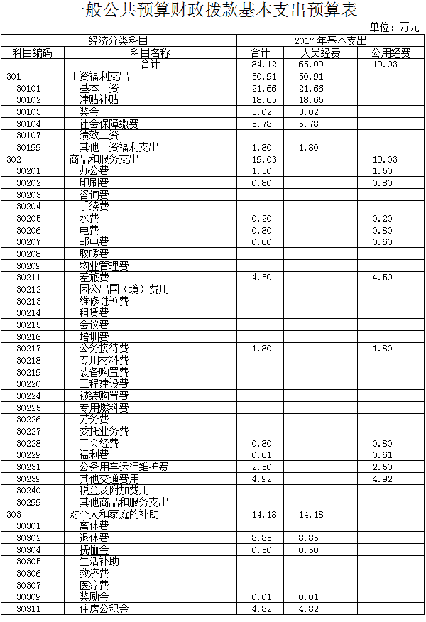 1、部門運行經費(即公用經費)。2017年一般公共預算財政撥款運行經費19.03萬元,主要用于:辦公費及印刷費、郵電費、水電費、差旅費、公車運行維護費、其他交通費用、其他商品和服務支出。