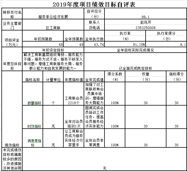 1.項目資金到位情況分析。2019年服務非公經濟發展項目資金48萬元,區財政按申請計劃及時劃撥。