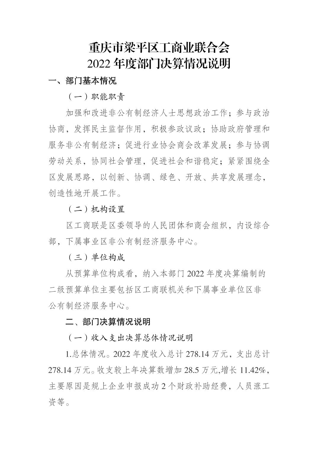 | 標題 | 重慶市梁平區(qū)工商業(yè)聯(lián)合會2022年度部門決算情況說明 |