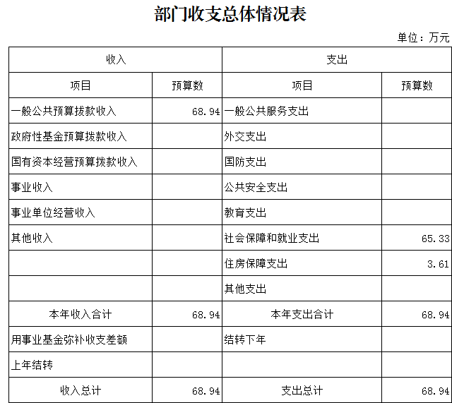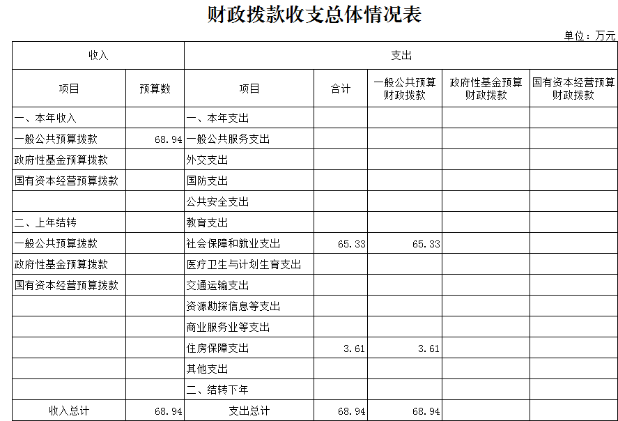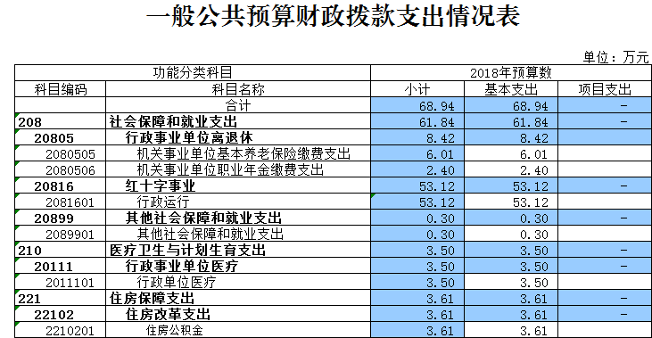 2018年一般公共預(yù)算財政撥款收入68.94萬元,一般公共預(yù)算財政撥款支出68.94萬元,比2017年增加21.54萬元。其中:基本支出68.94萬元,比2017年增加21.54萬元,主要原因是職工工資、津補貼等較2017年調(diào)高,主要用于保障在職人員工資福利及社會保險繳費,保障部門正常運轉(zhuǎn)的各項商品服務(wù)支出。