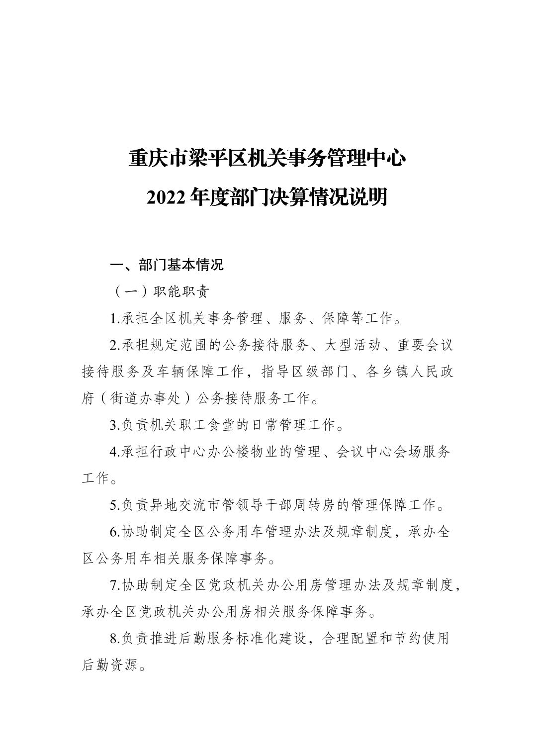 | 標(biāo)題 | 重慶市梁平區(qū)機(jī)關(guān)事務(wù)管理中心2022年度部門決算情況說明 |