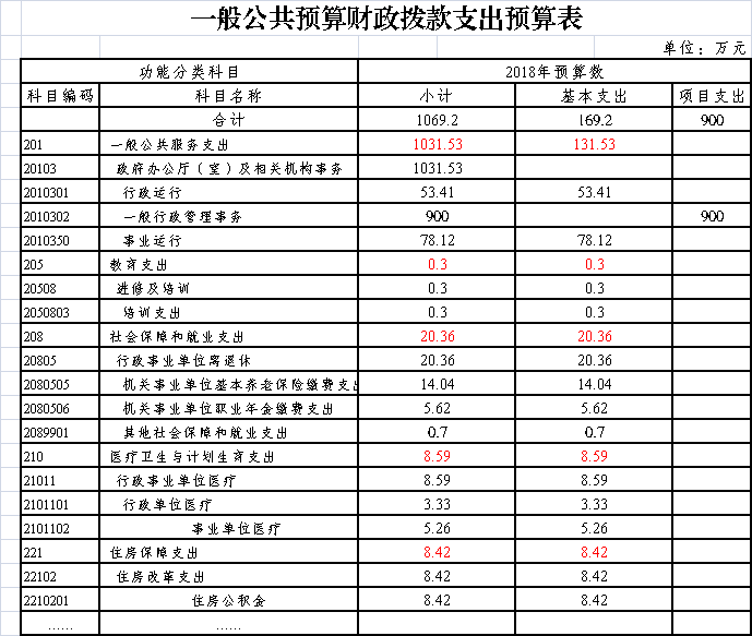 ?2018年一般公共預算財政撥款收入1069.2萬元,一般公共預算財政撥款支出1069.2萬元,比2017年增加83.88萬元。其中:基本支出169.2萬元,比2017年增加58.19萬元,主要原因是工資及公用經費增加等,主要用于保障在職人員工資福利及社會保險繳費,保障部門正常運轉的各項商品服務支出;項目支出900萬元,比2017年增加25.69萬元,主要原因是新增機關食堂運行經費(2017年3月之前機關食堂實行對外承包市場化經營,財政不承擔費用,2017年3月之后,為提高機關食堂服務質量,根據區常務會議精神機關食堂自2017年3月轉由機關事務管理局進行管理,由財政承擔水電氣及人員經費)。