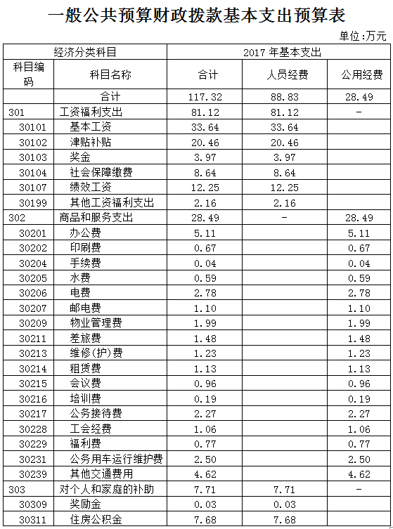 1、部門運行經費(即公用經費)。2017年一般公共預算財政撥款運行經費28.49萬元,主要用于:辦公費、電費、郵電費、物業管理費、維修維護費、公務接待費、公車運行維護費、其他交通費用。