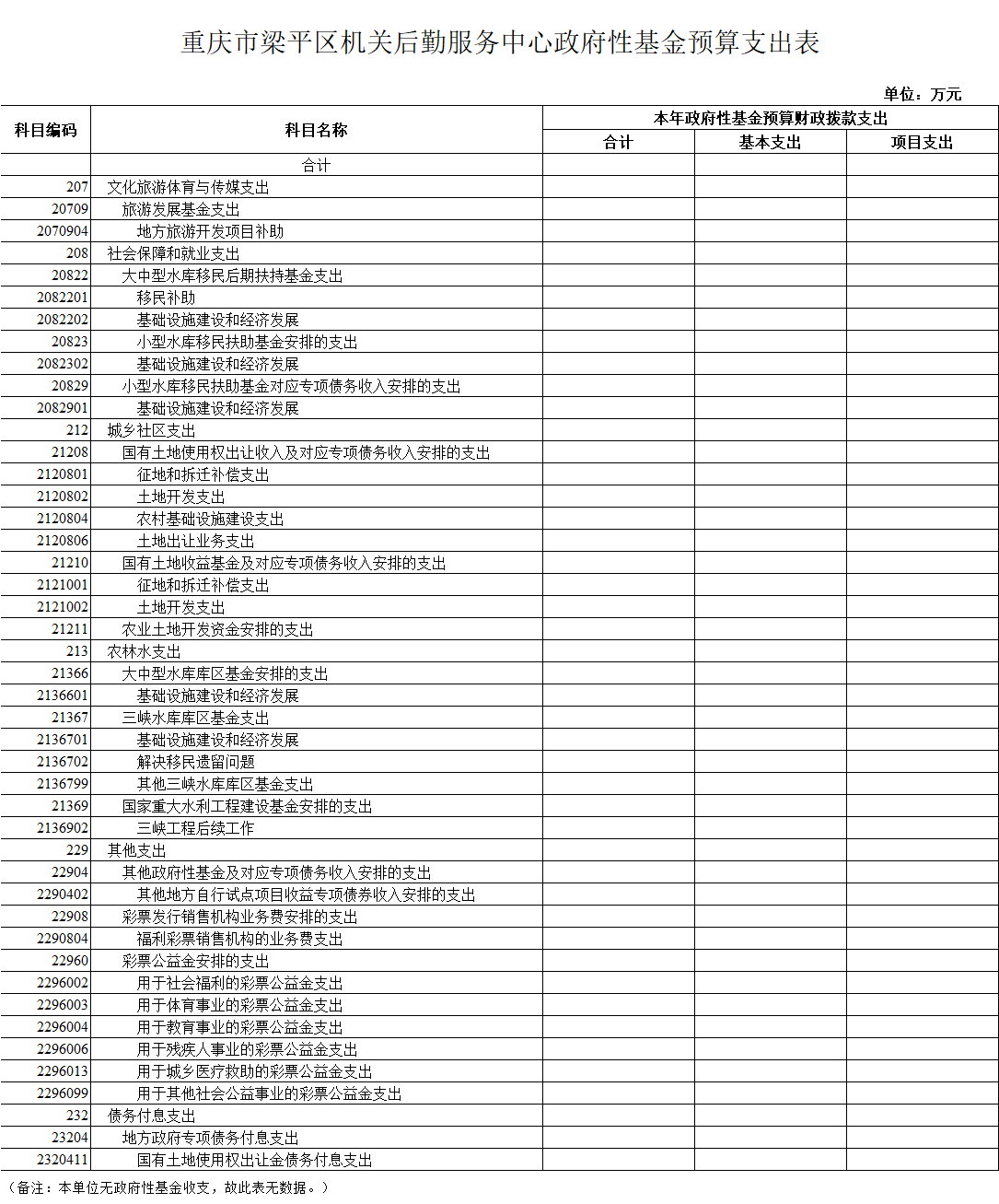 重慶市梁平區機關后勤服務中心2020年未使用政府性基金預算撥款安排的支出。