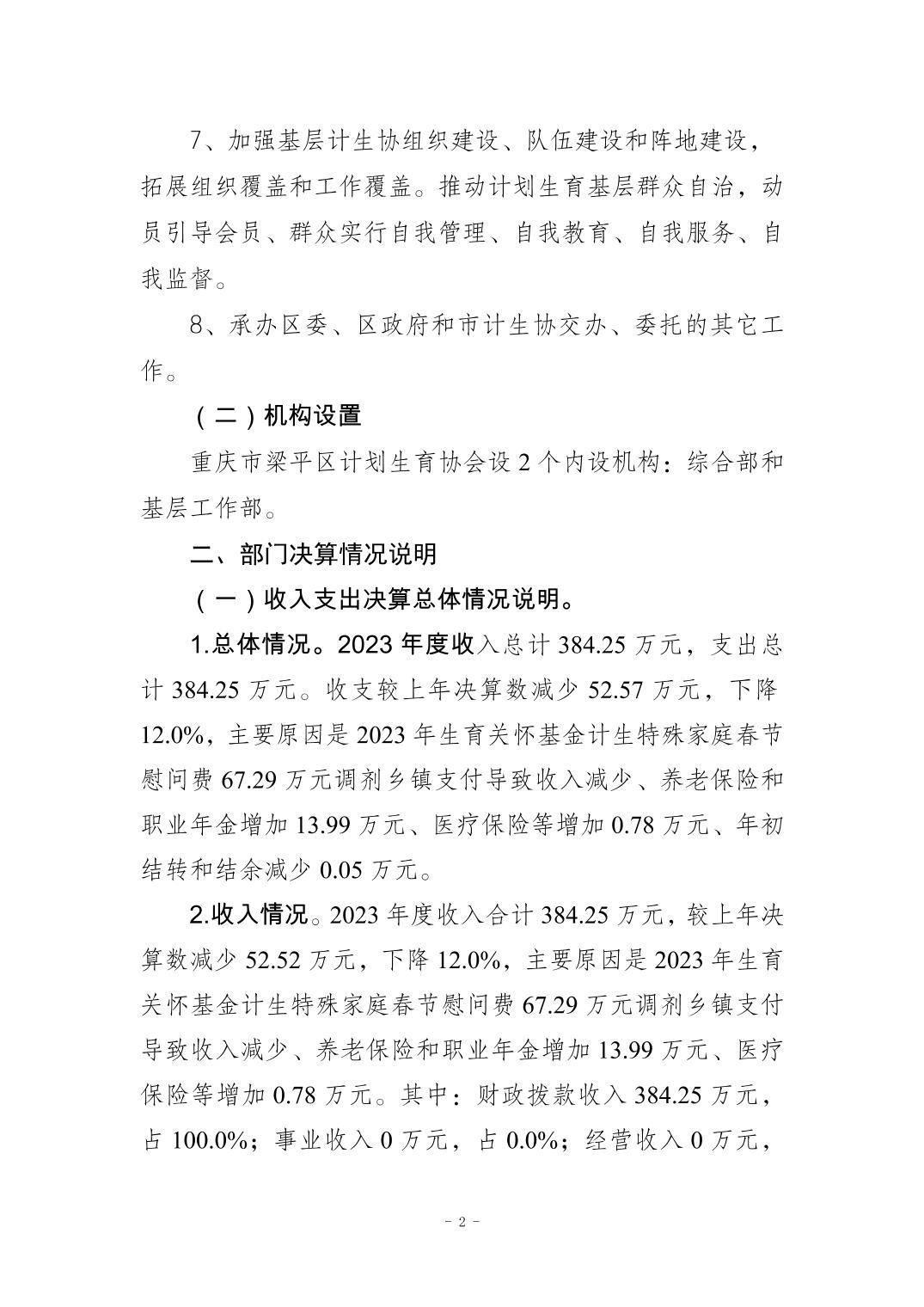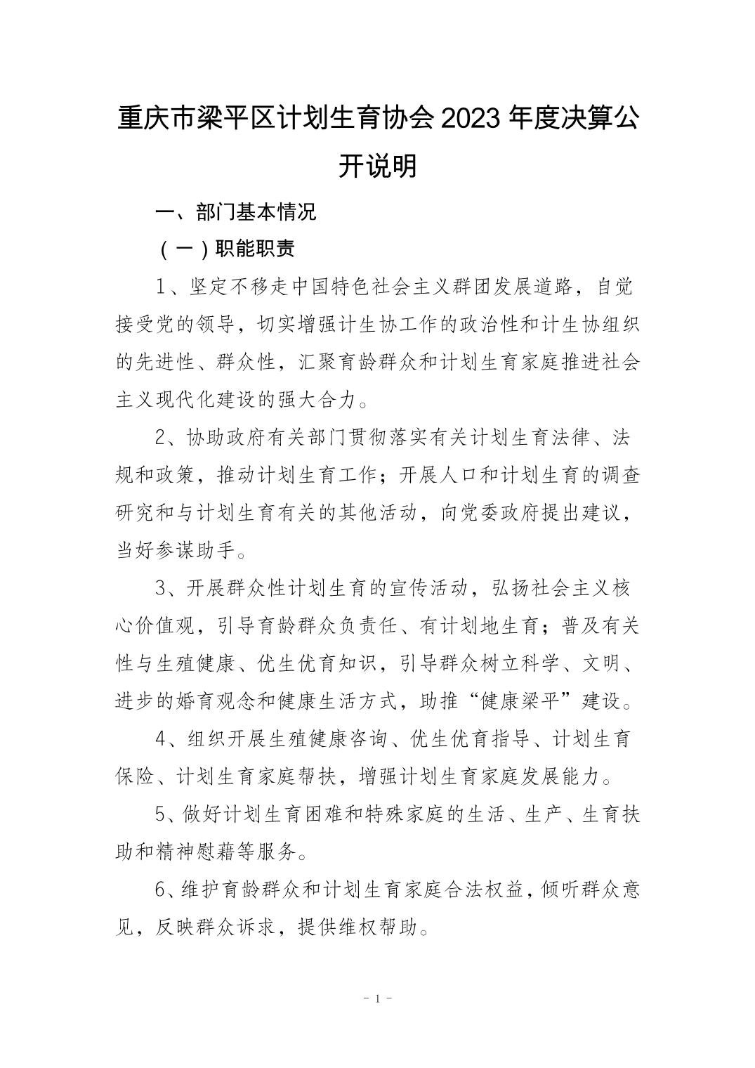 | 標題 | 重慶市梁平區(qū)計劃生育協(xié)會2023年度決算公開說明 |