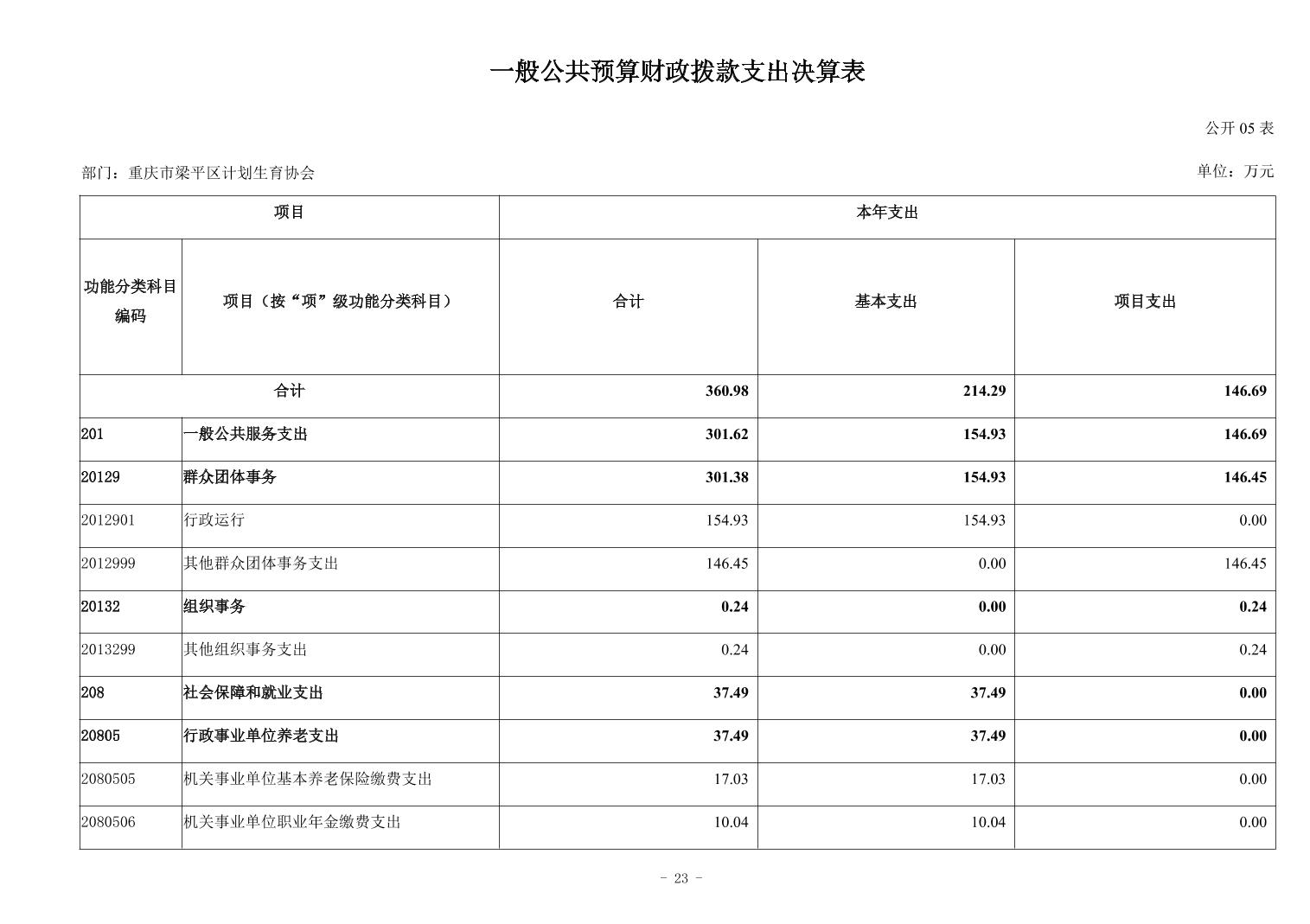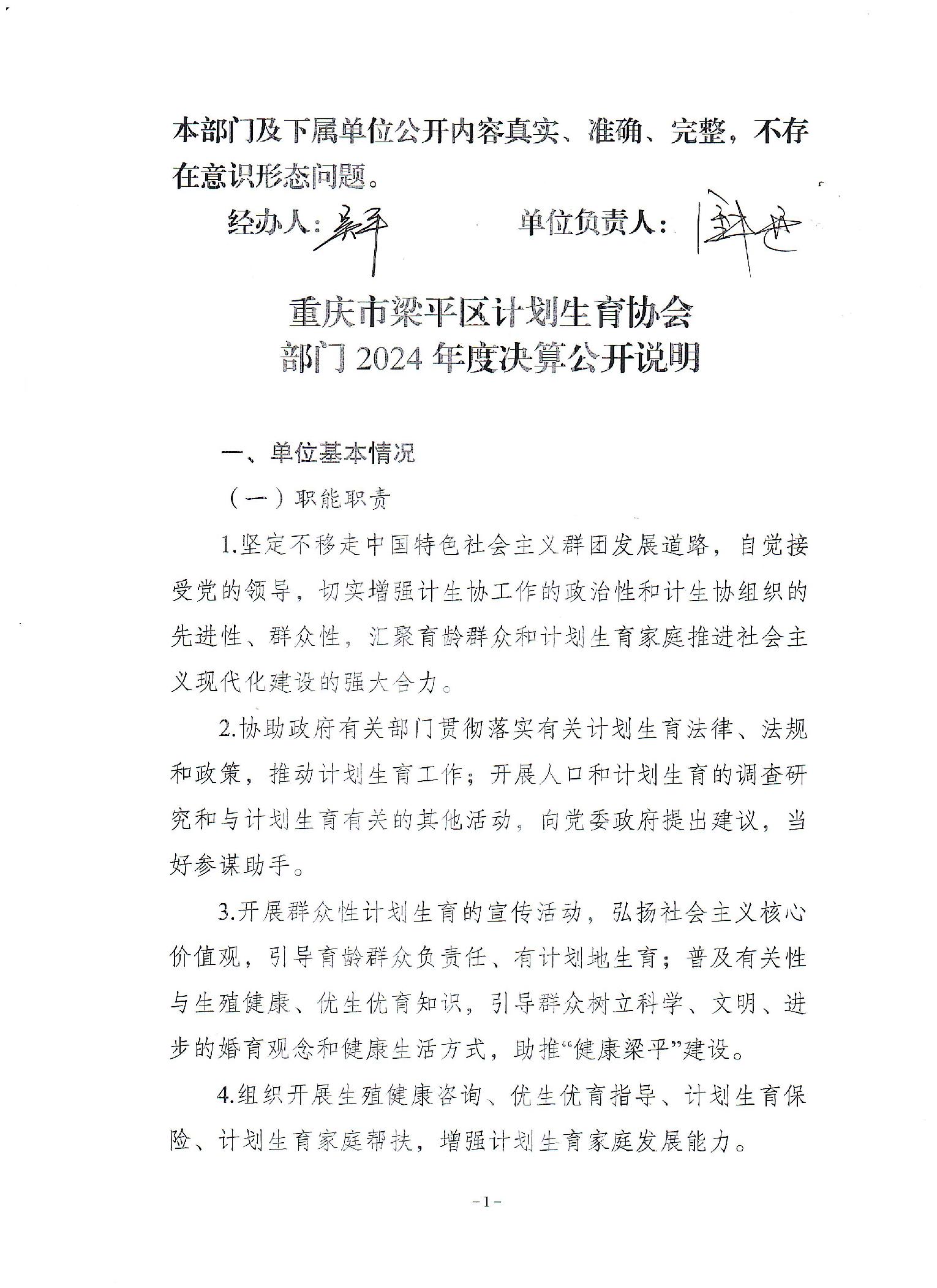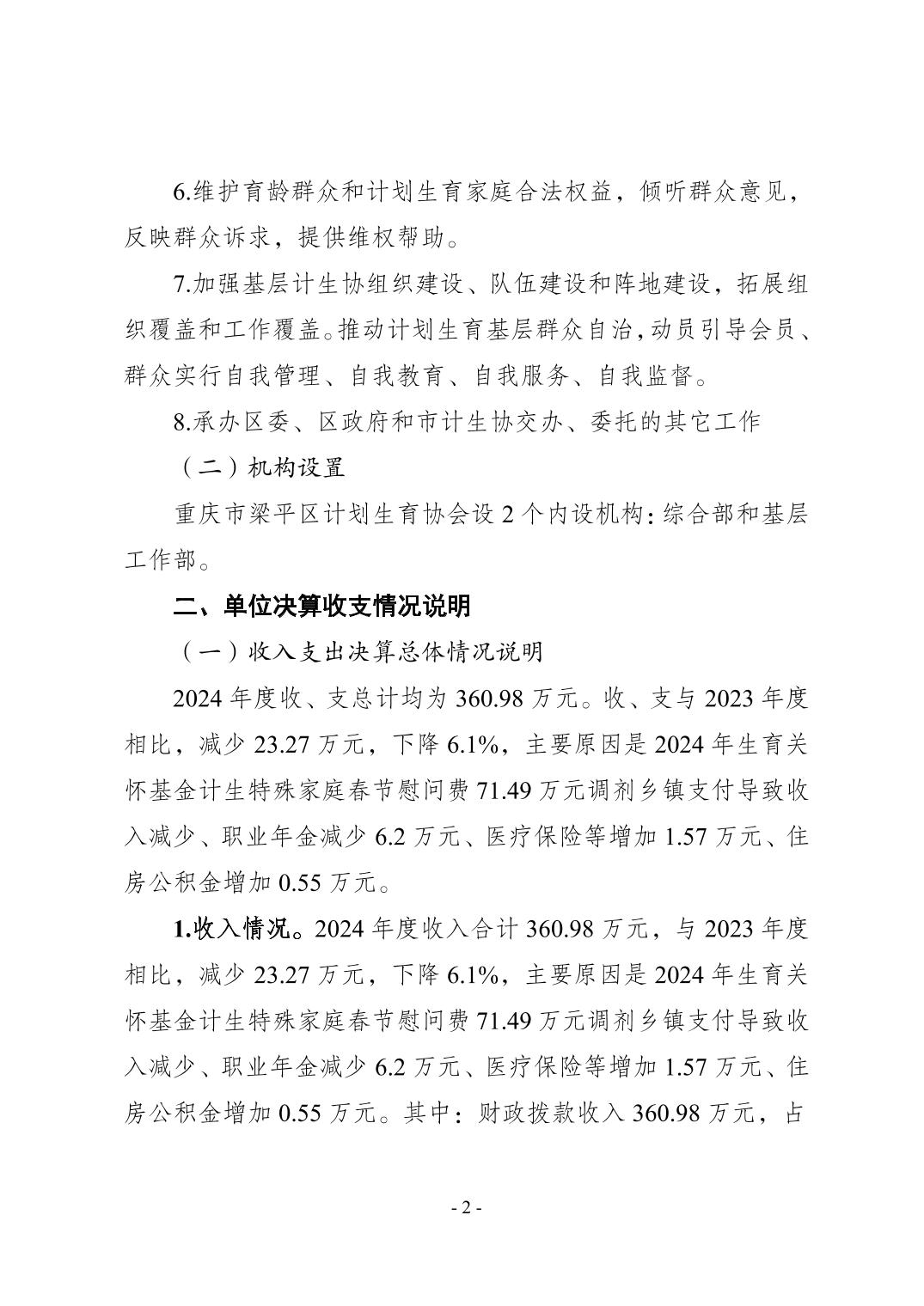 | 標題 | 重慶市梁平區計劃生育協會2024年度決算公開說明 |