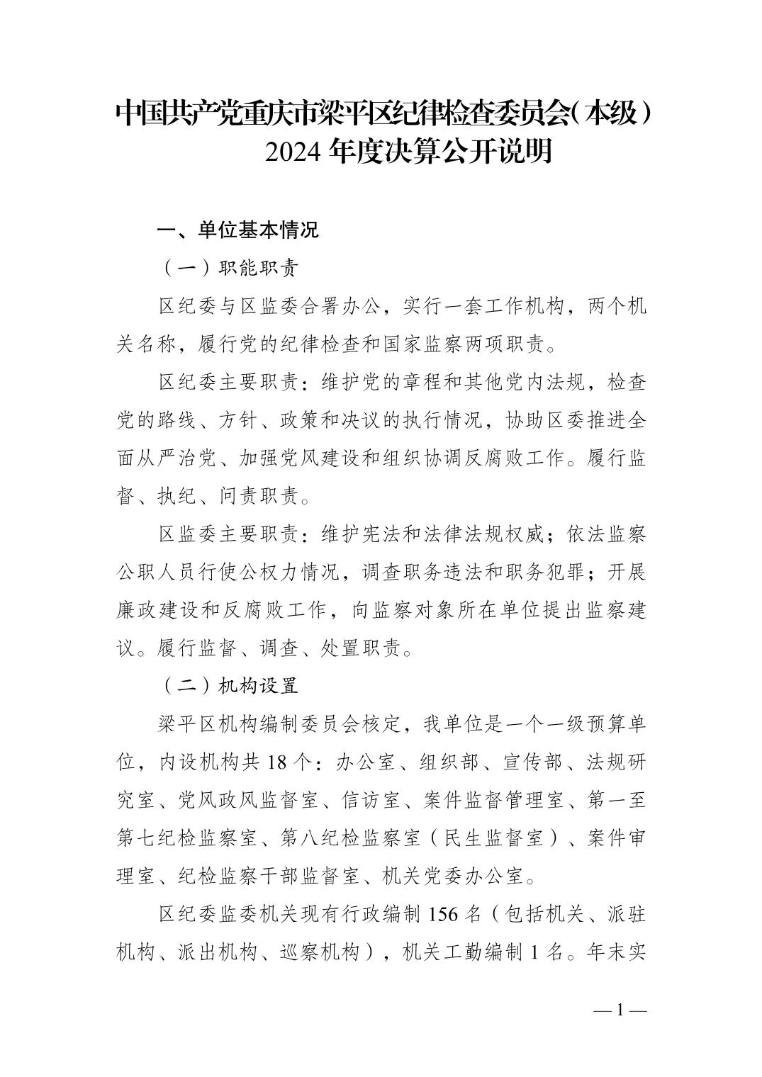 標題 中國共產(chǎn)黨重慶市梁平區(qū)紀律檢查委員會(本級) 2024 年度決算公開說明
