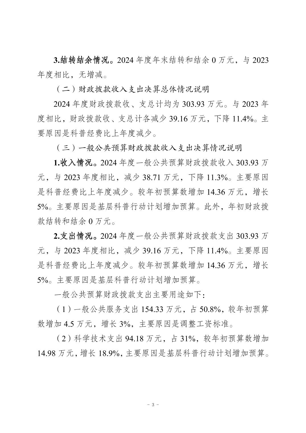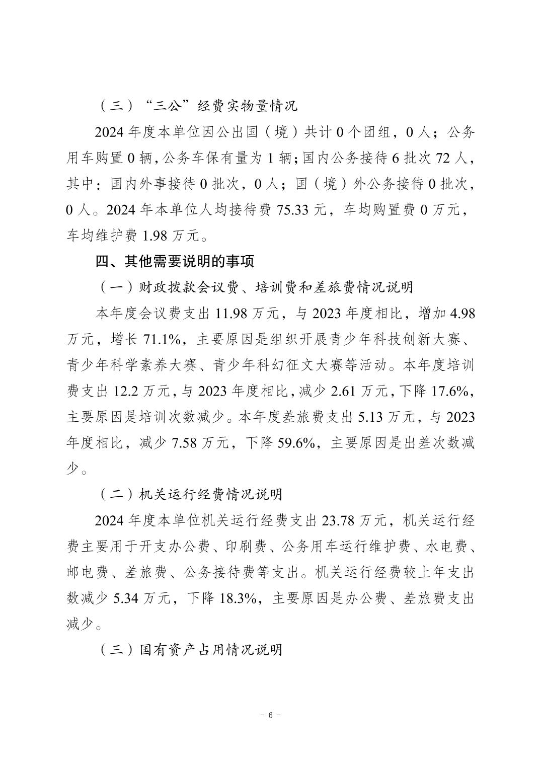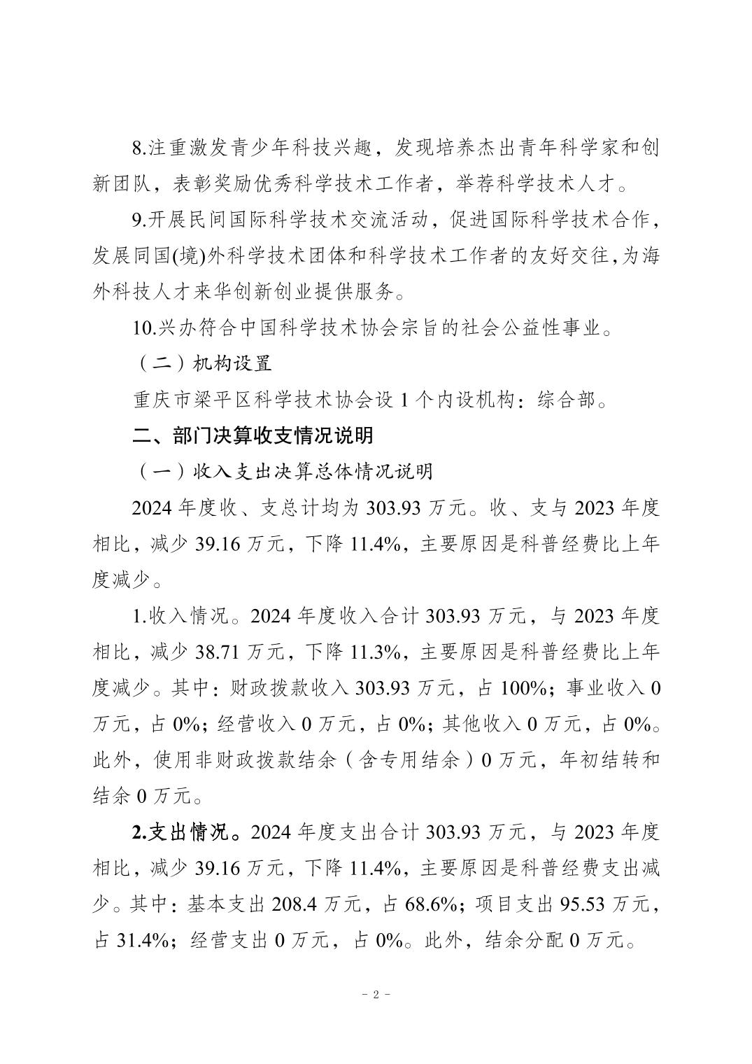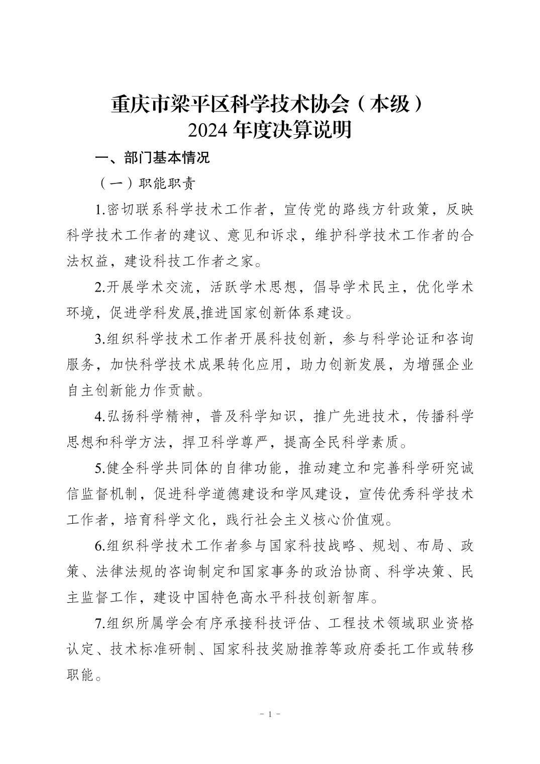 標題 重慶市梁平區科學技術協會(本級) 2024年度決算公開說明