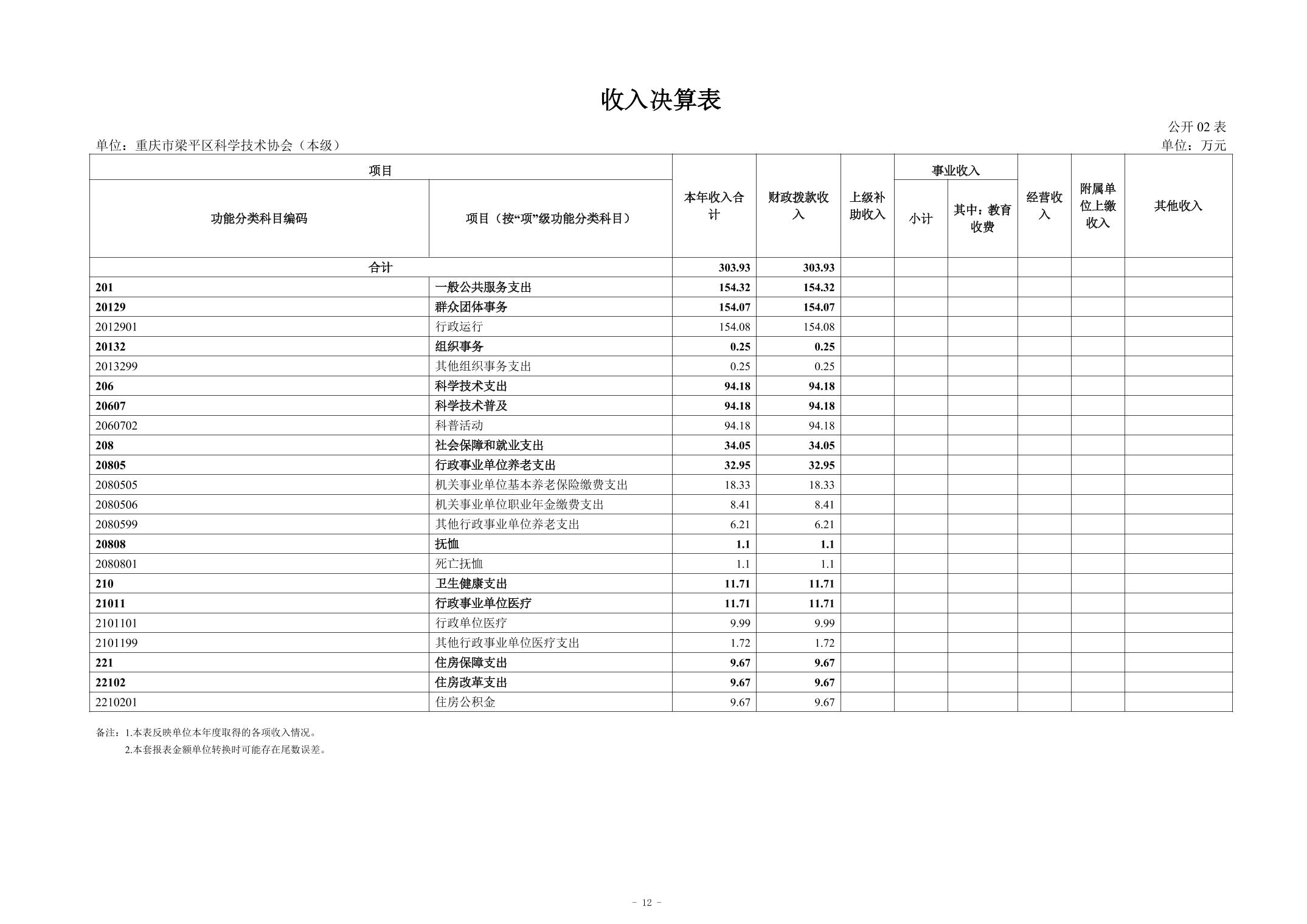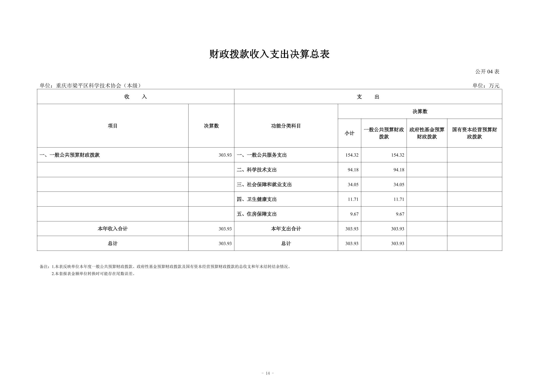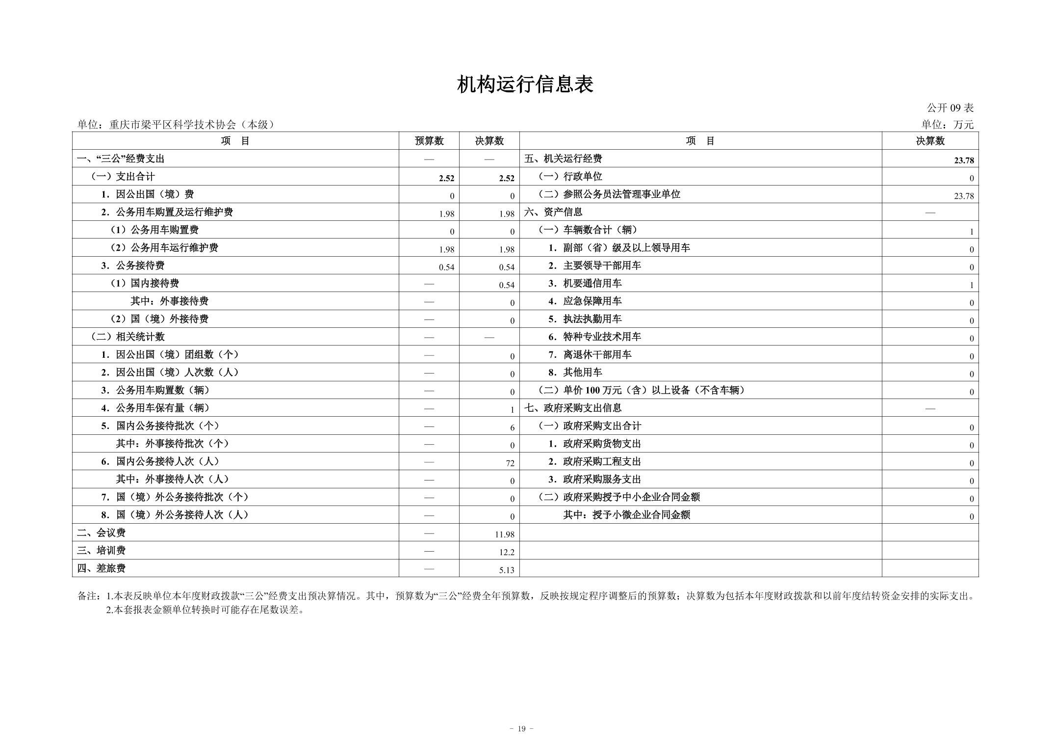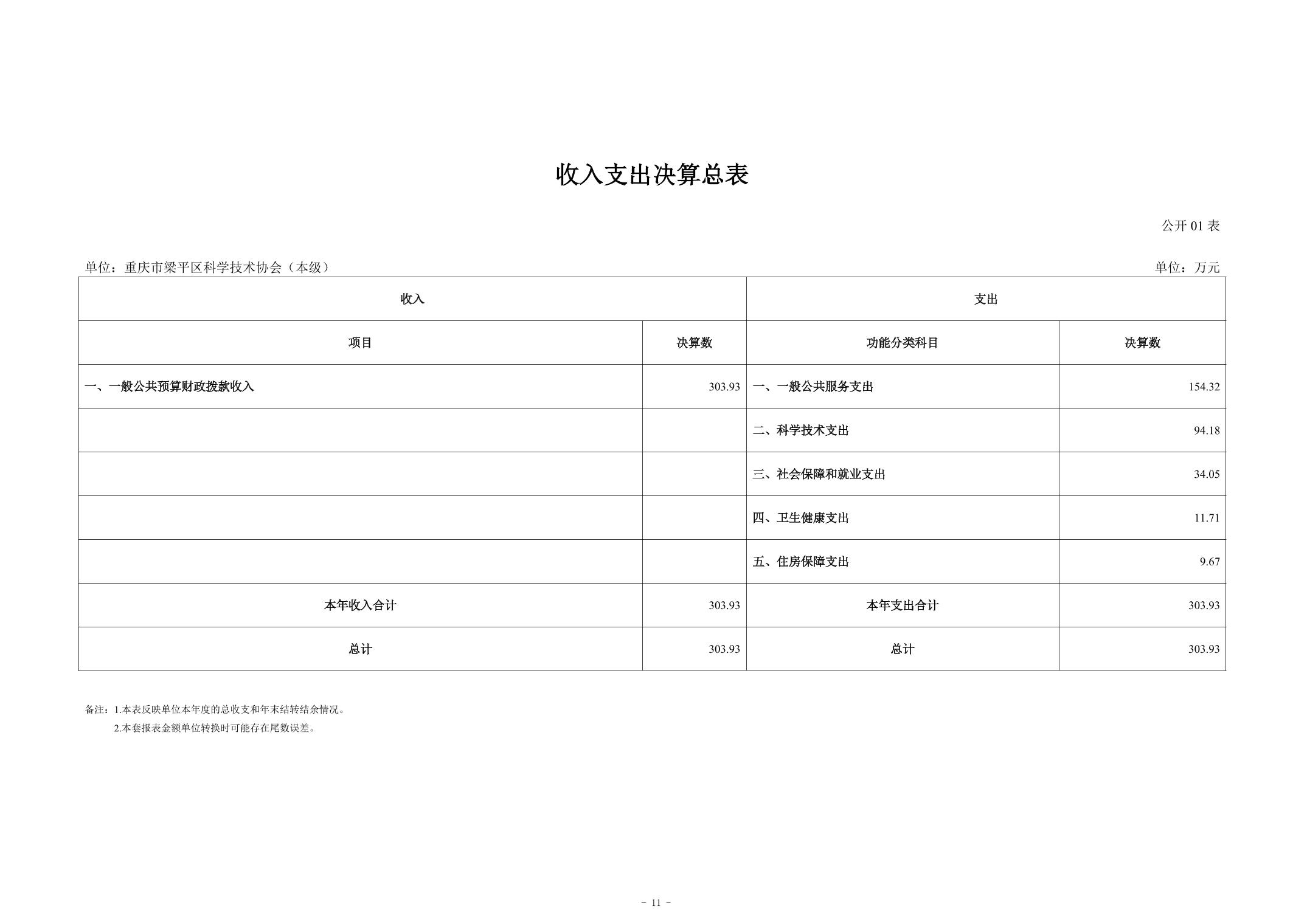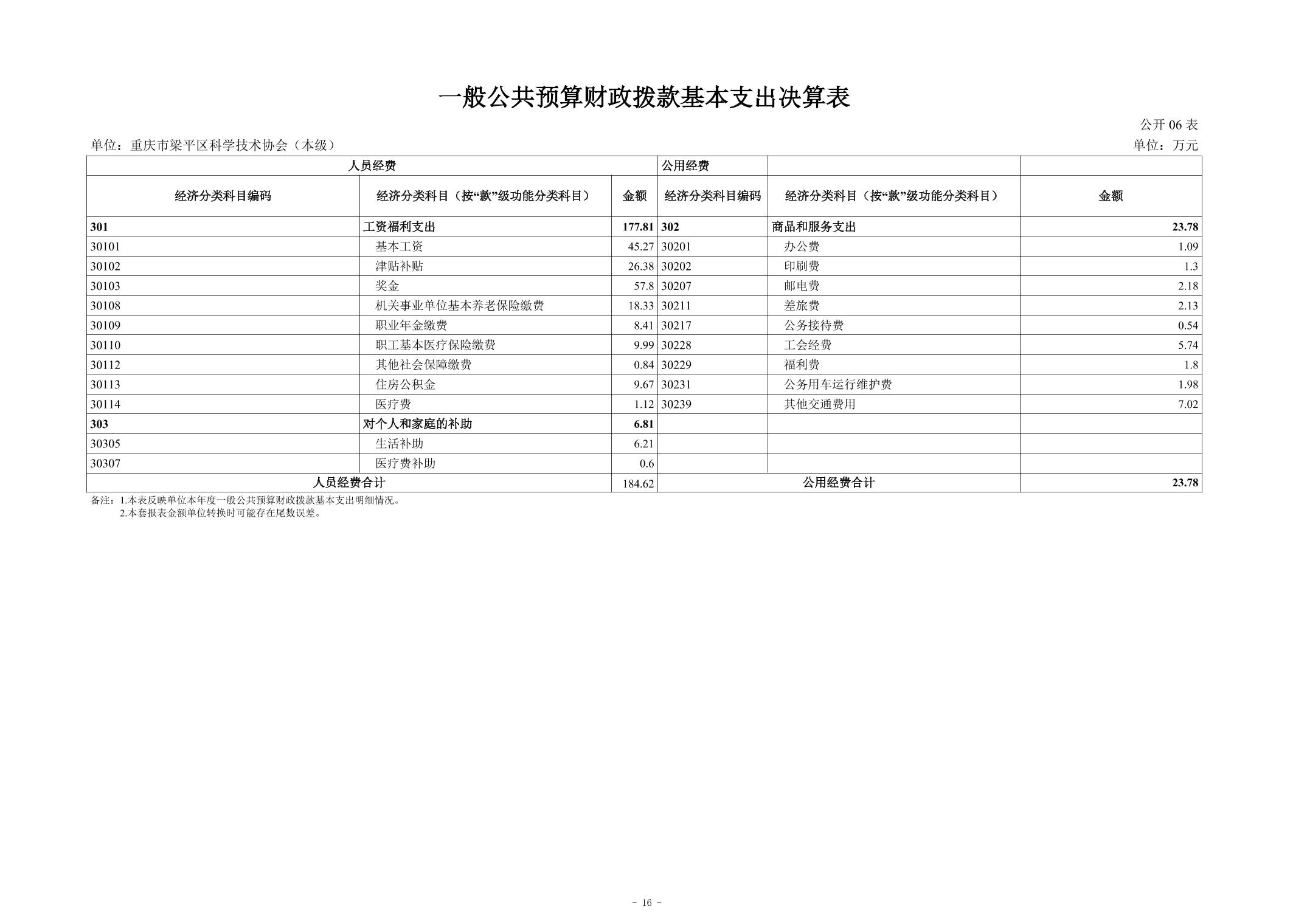 標題 重慶市梁平區科學技術協會(本級) 2024年度決算公開說明