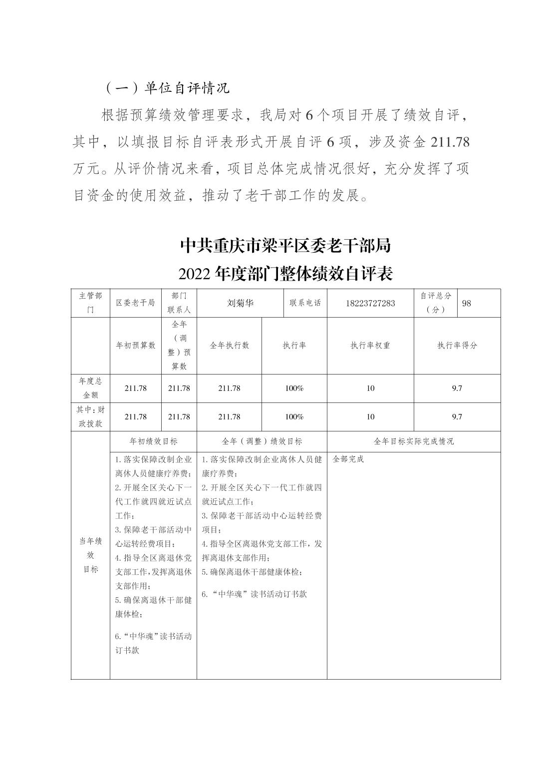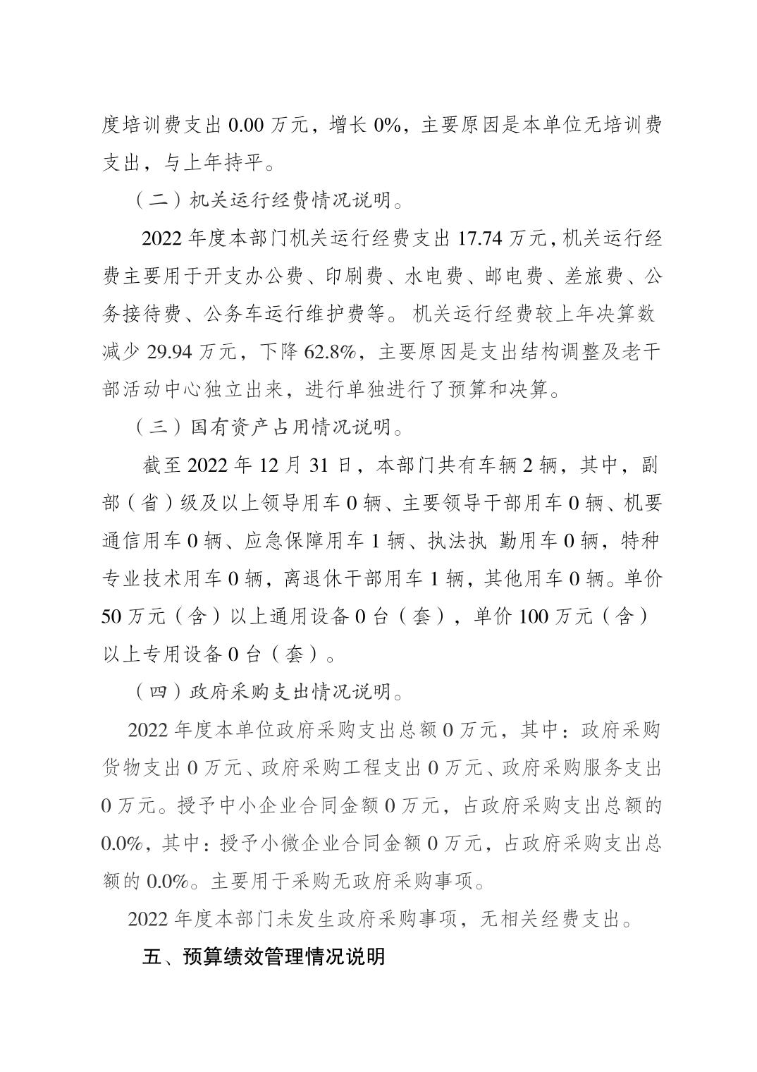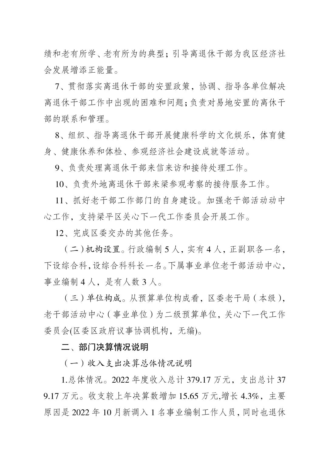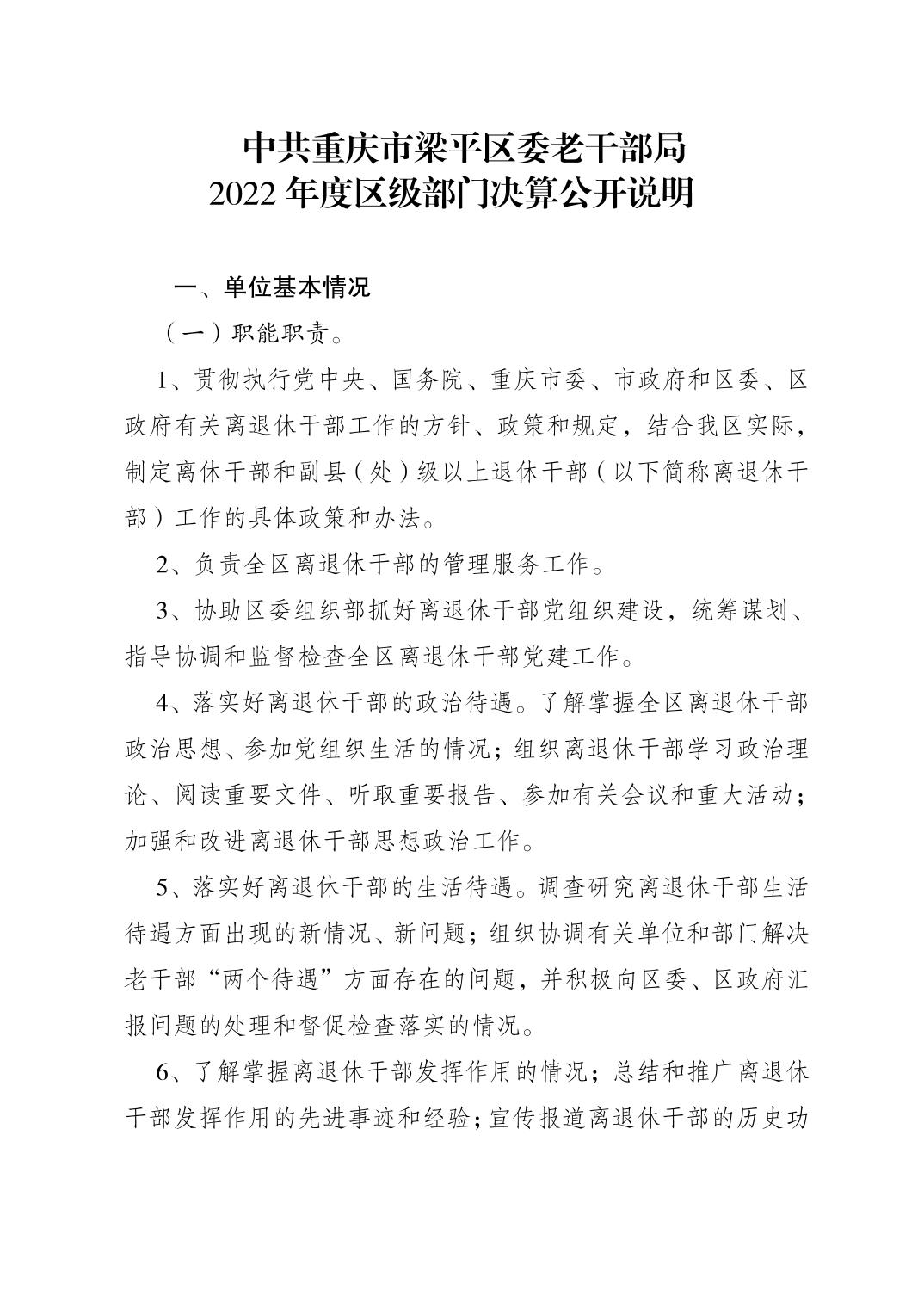 | 標題 | 中共重慶市梁平區委老干部局 2022年度區級部門決算公開說明 |