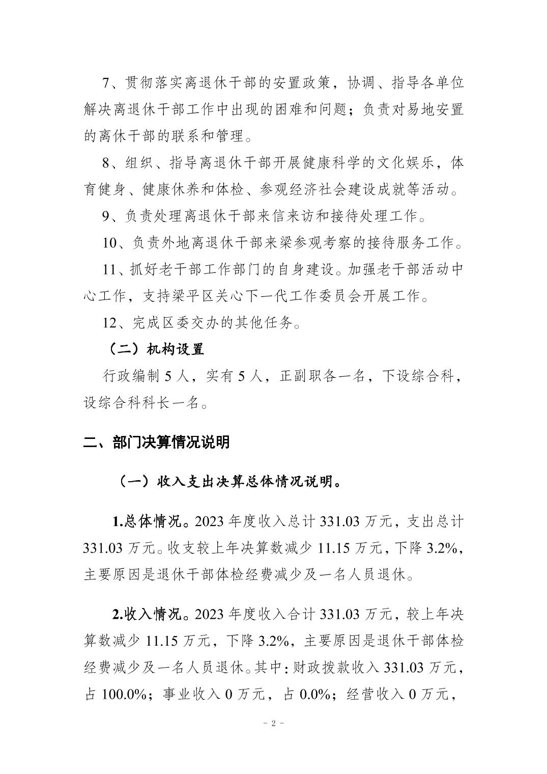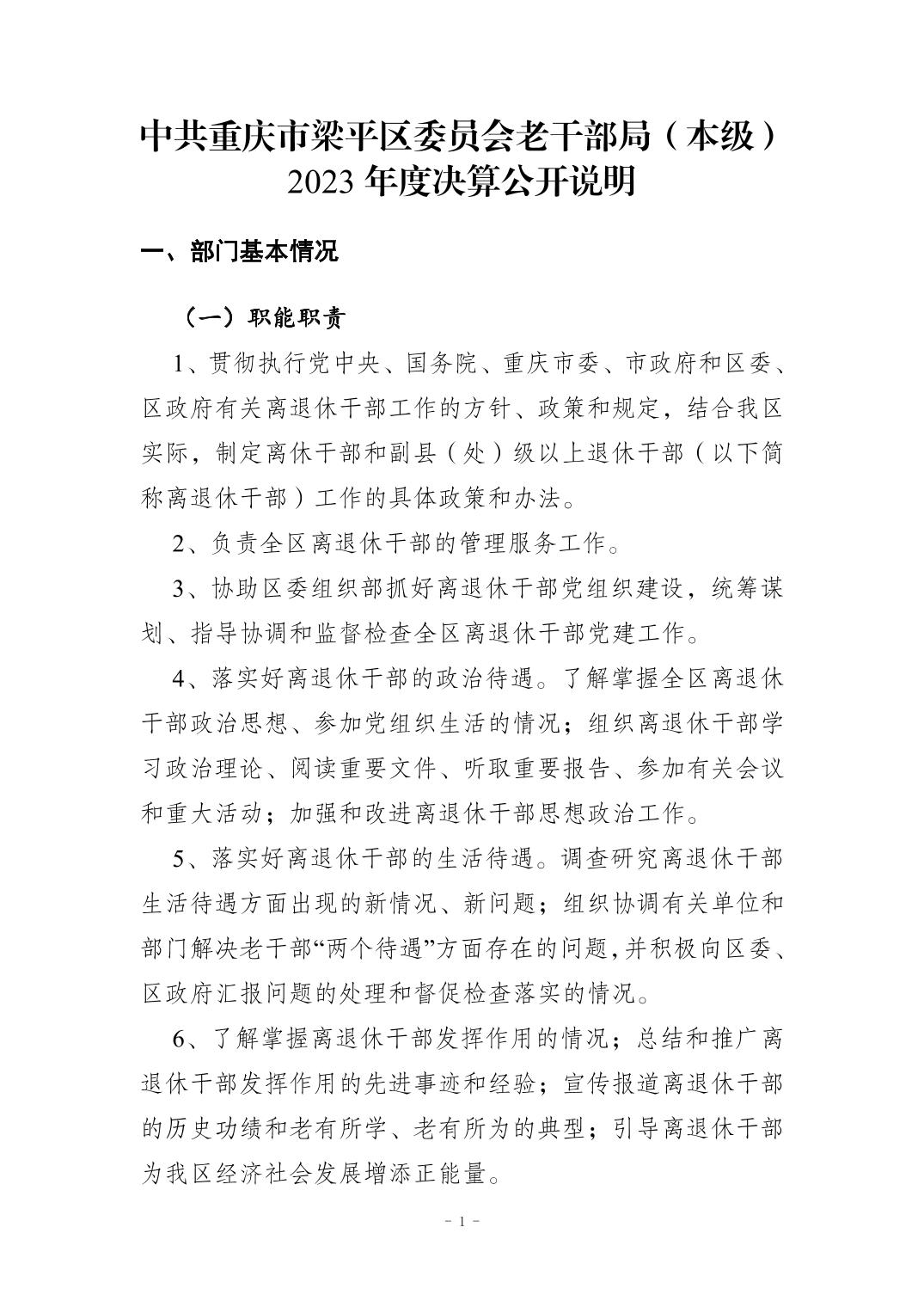 | 標題 | 中共重慶市梁平區委員會老干部局(本級)2023 年度決算公開說明 |