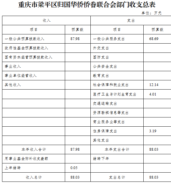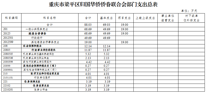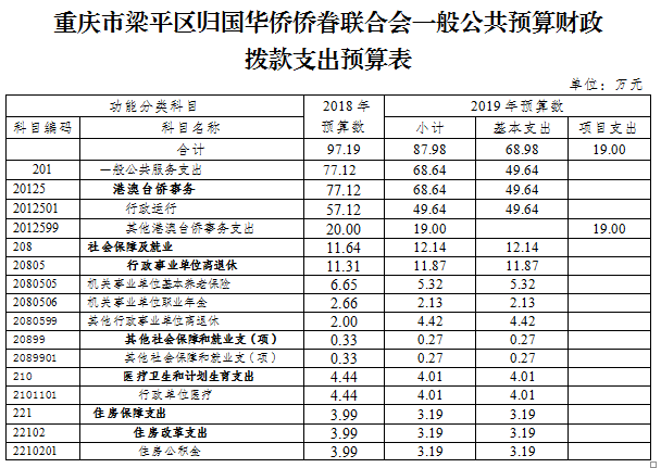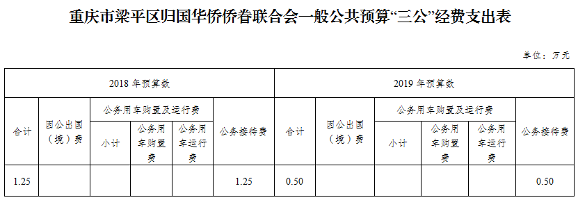 | 標題 | 重慶市梁平區歸國華僑僑眷聯合會2019年部門預算情況說明 |