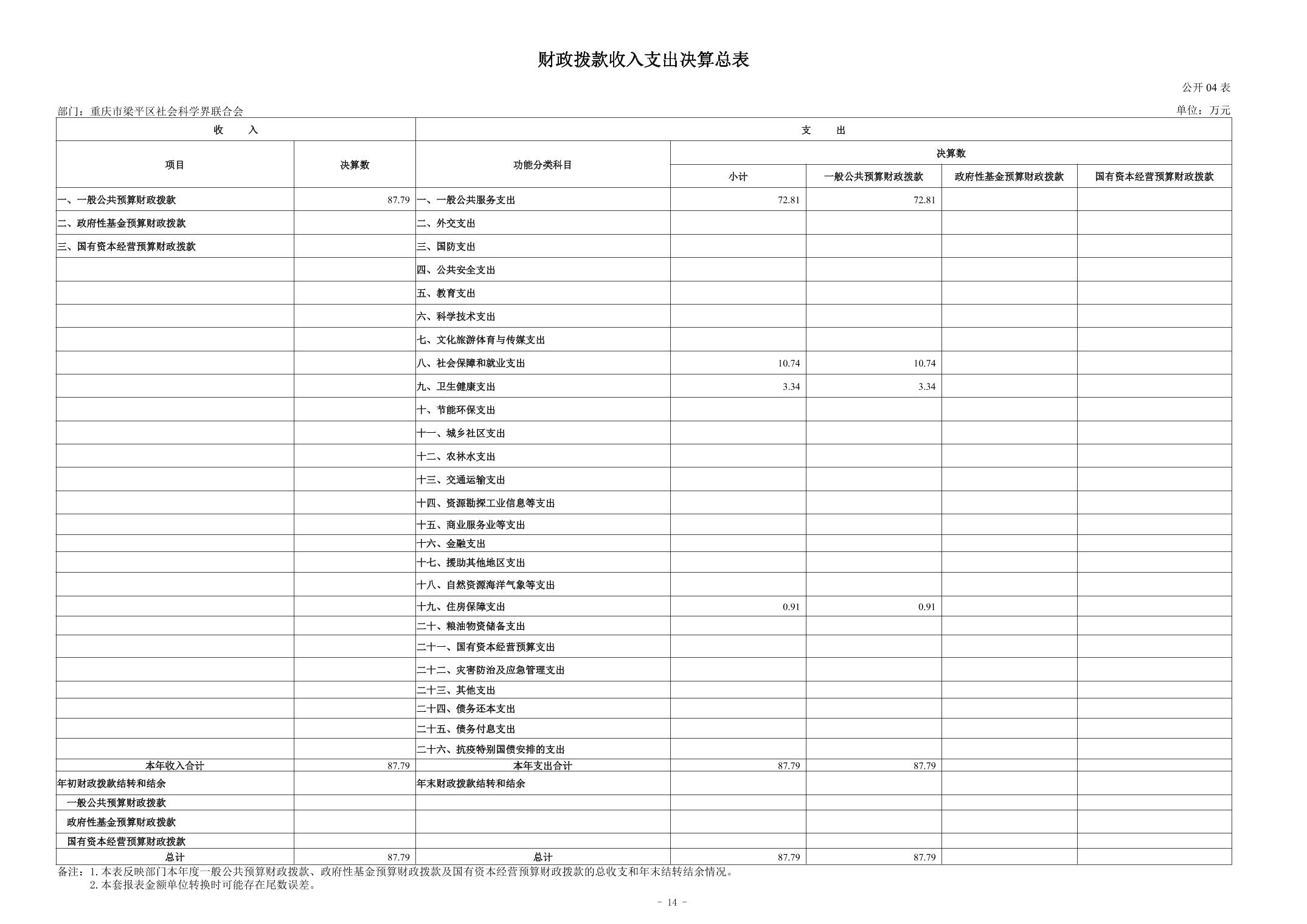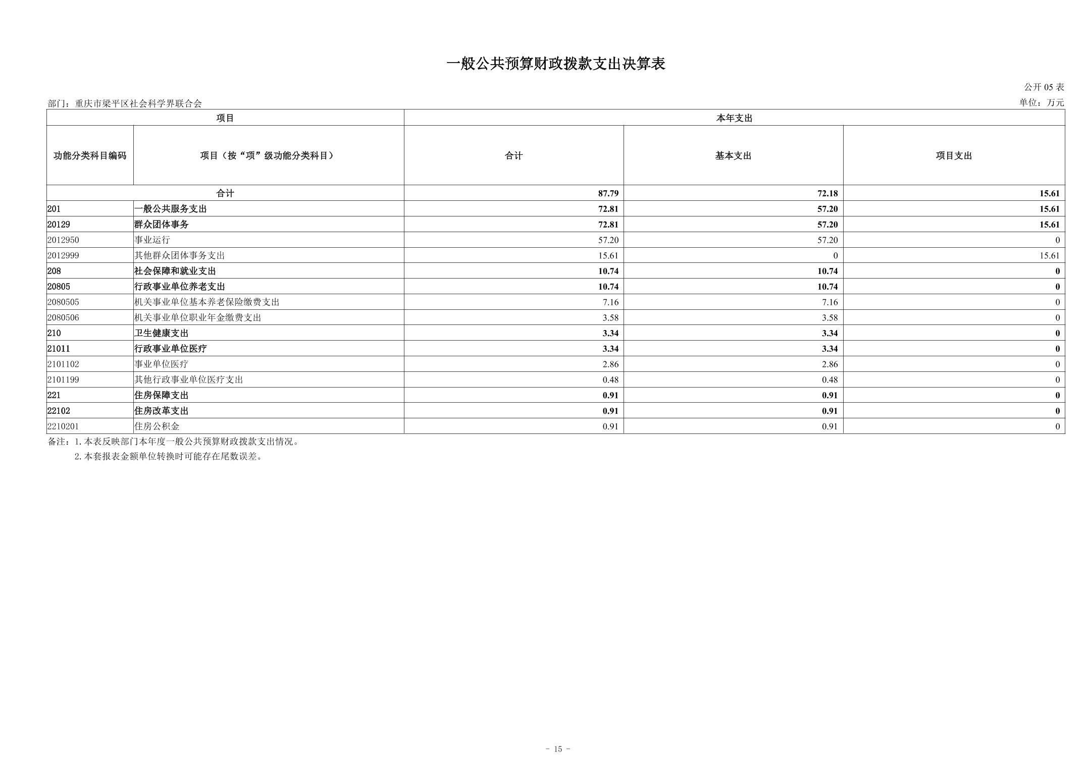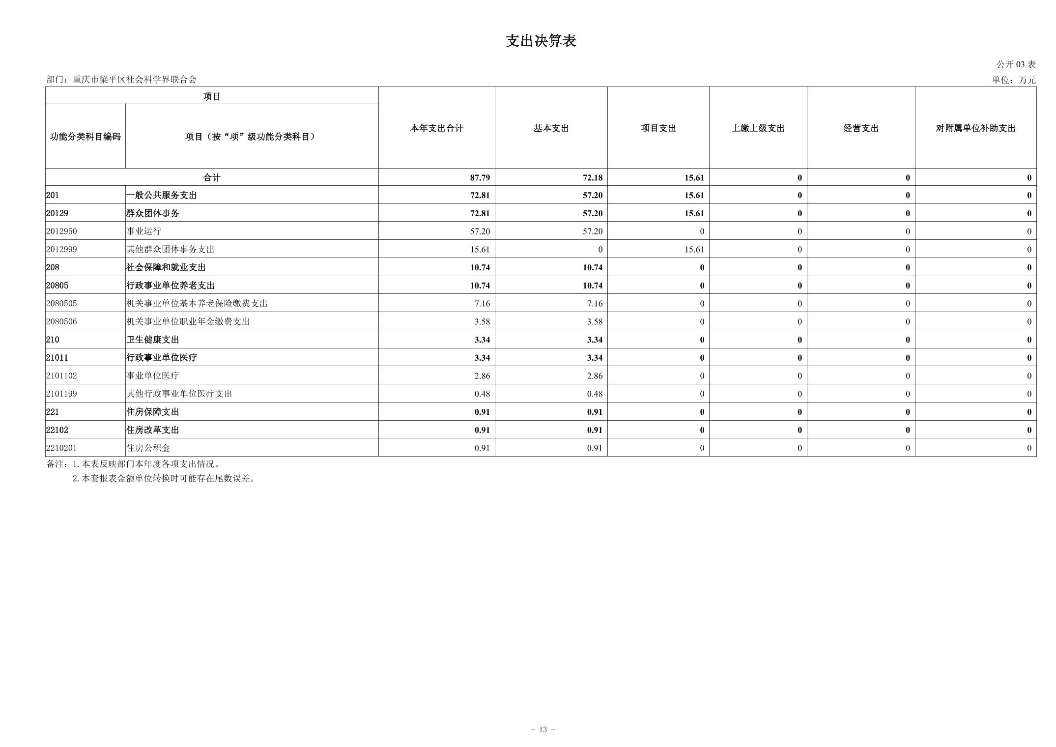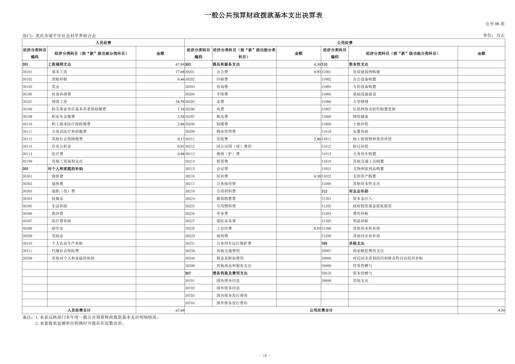 標題 重慶市梁平區社會科學界聯合會 2024 年度決算公開說明