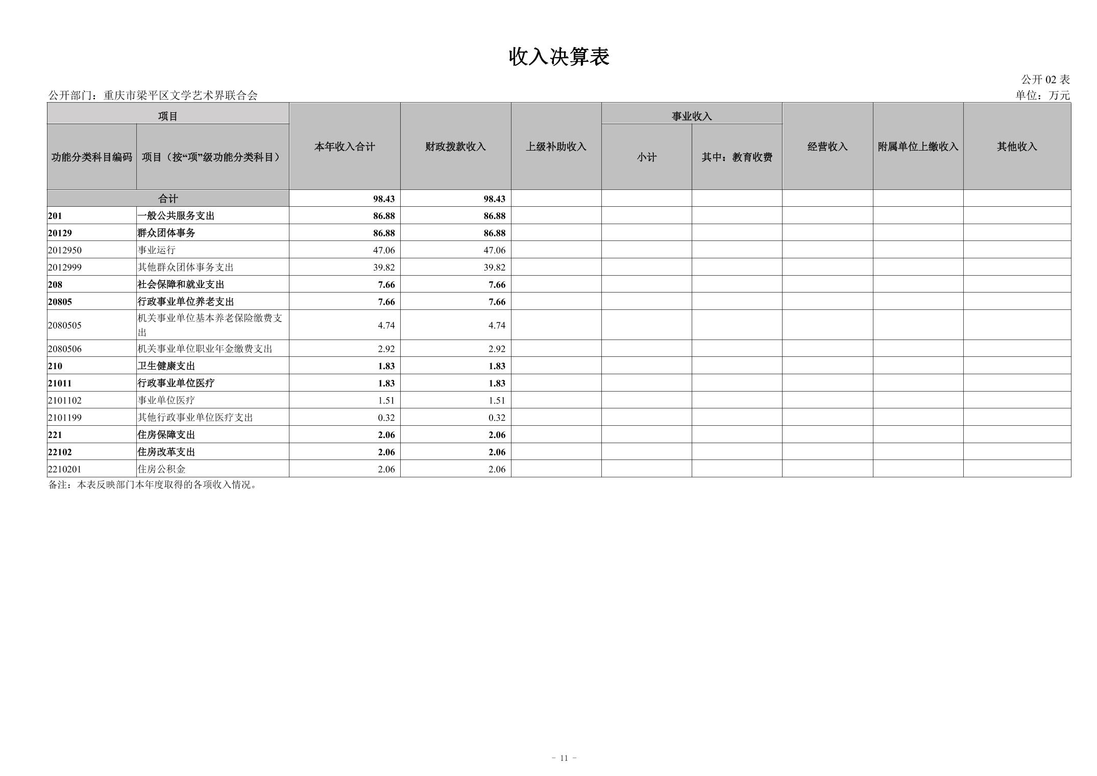 | 標題 | 重慶市梁平區文學藝術界聯合會2023年度決算公開說明(部門) |