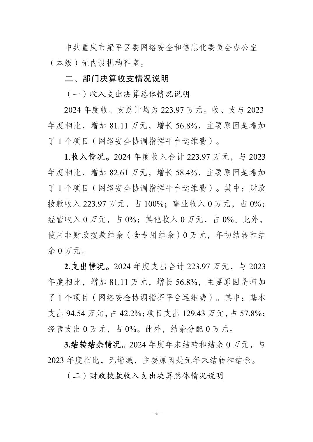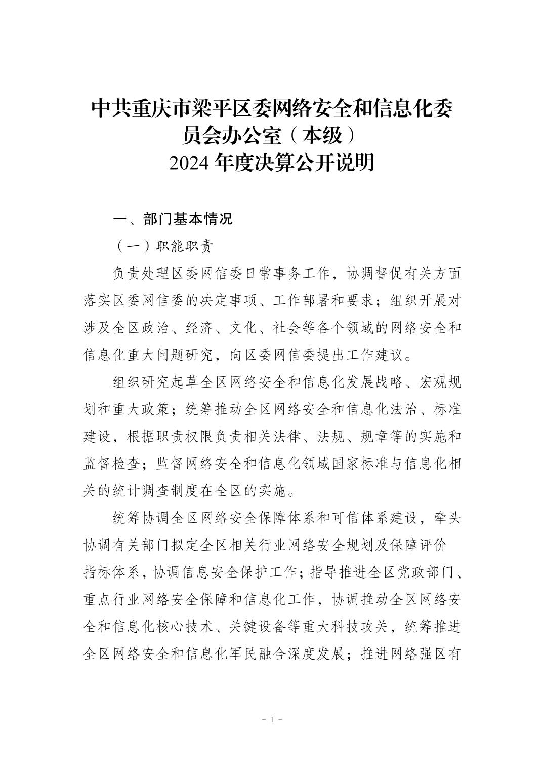 標(biāo)題 中共重慶市梁平區(qū)委網(wǎng)絡(luò)安全和信息化委 員會(huì)辦公室(本級(jí)) 2024 年度決算公開說明