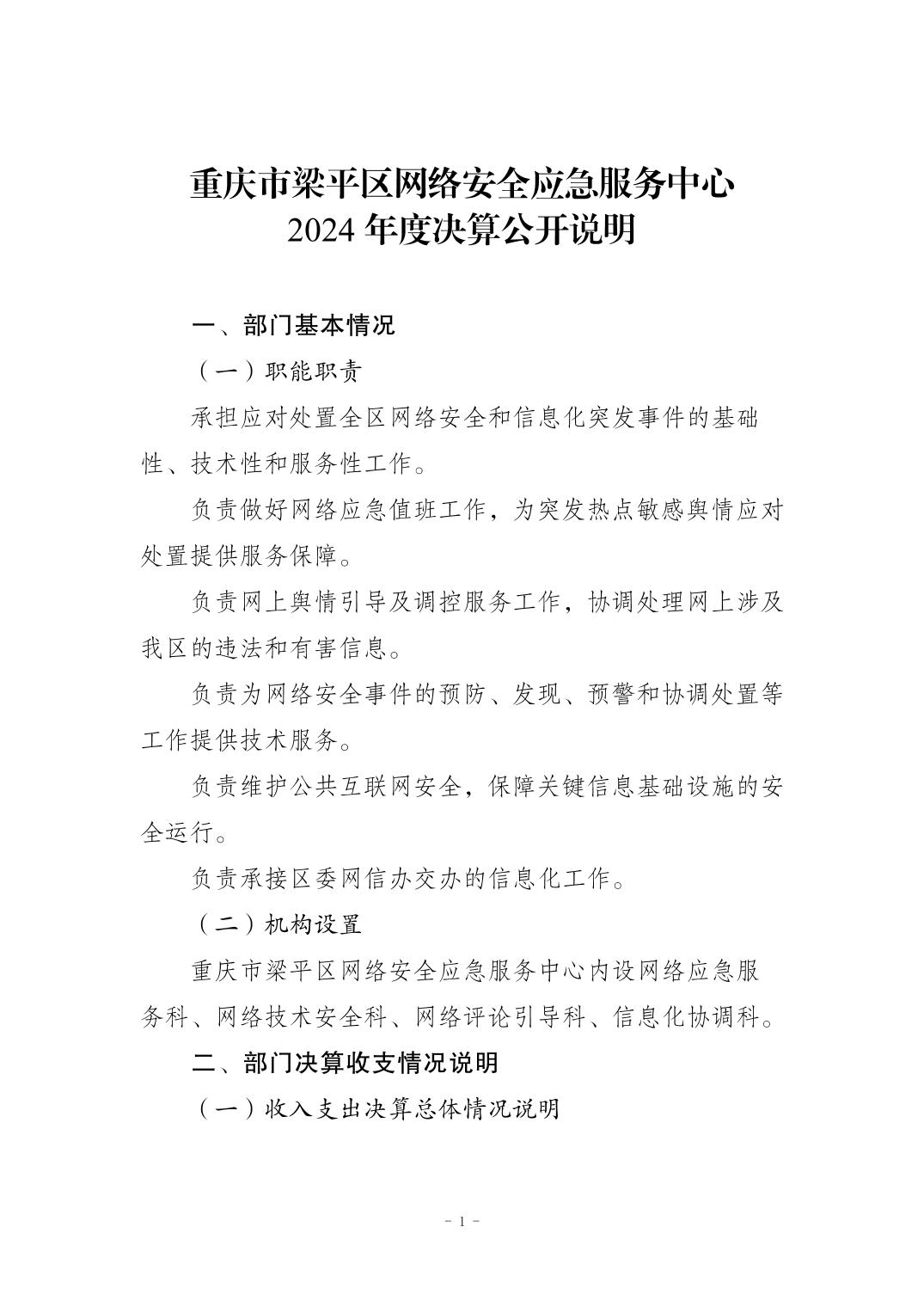 | 標題 | 重慶市梁平區(qū)網(wǎng)絡安全應急服務中心 2024 年度決算公開說明 |