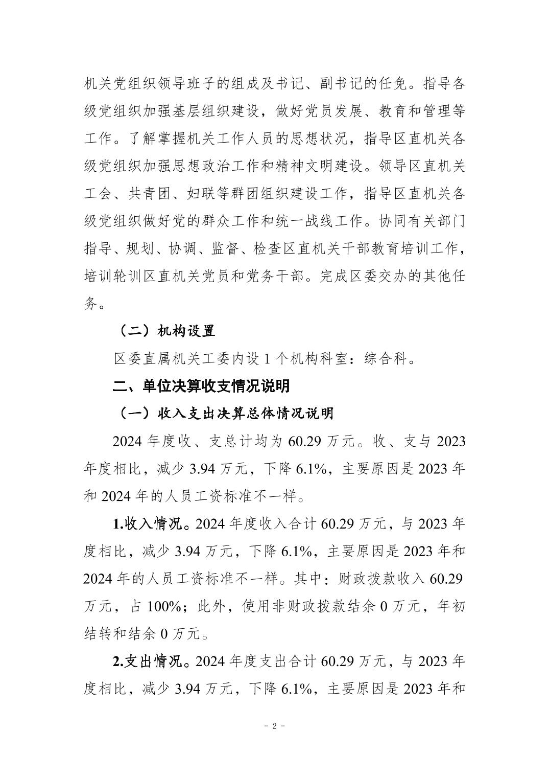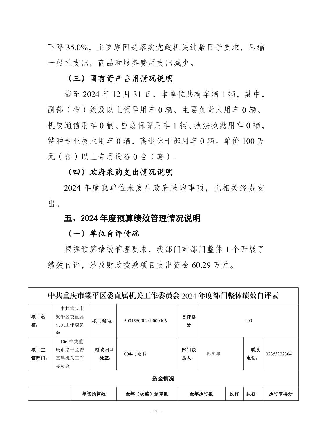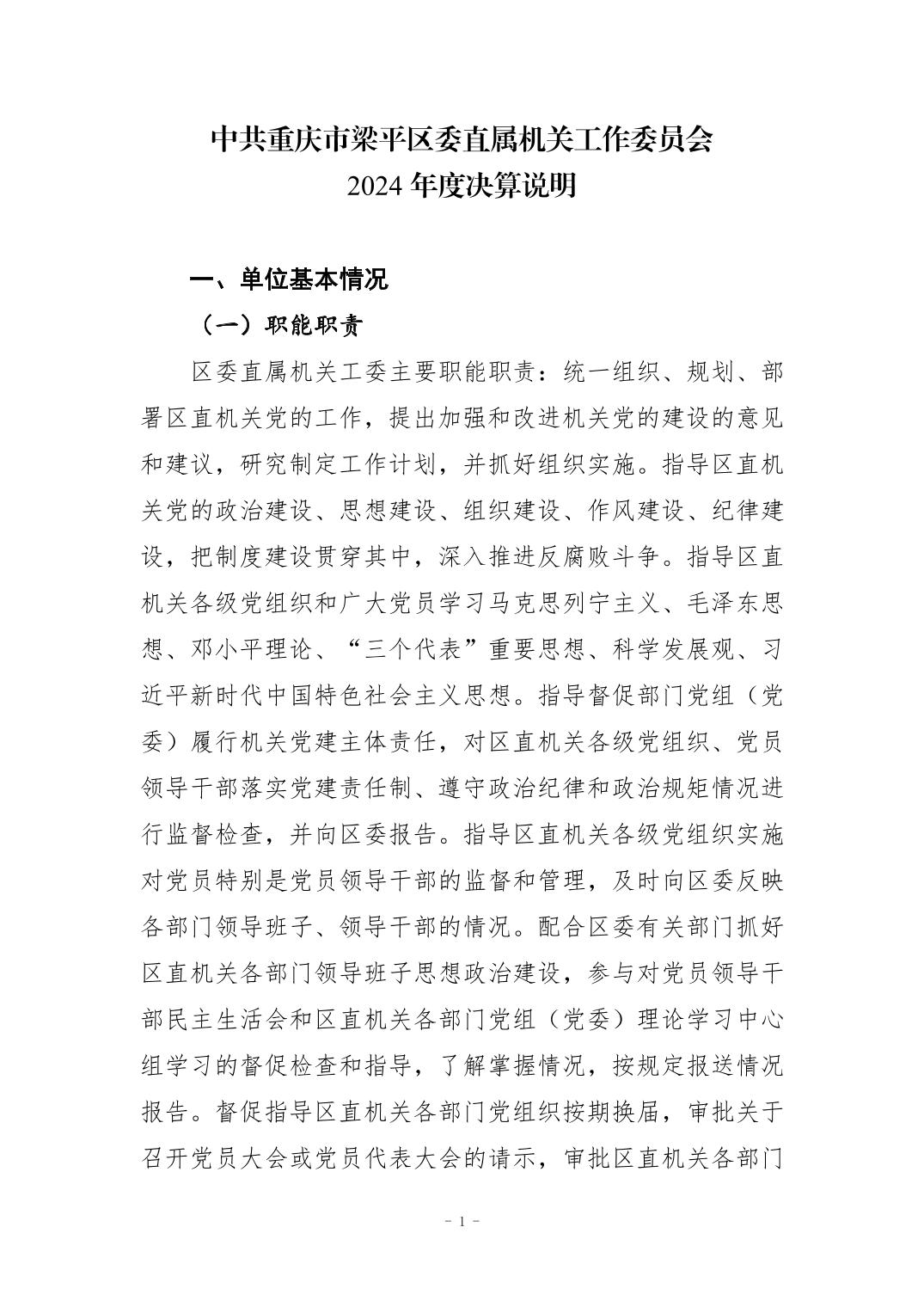 | 標題 | 中共重慶市梁平區(qū)委直屬機關(guān)工作委員會 2024 年度決算說明 |