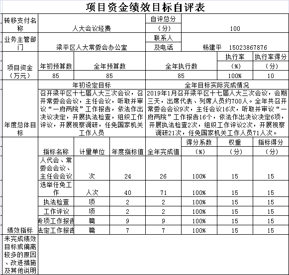 2.重慶市梁平區人大常委會辦公室關于開展2019年人大會議項目績效自評的報告