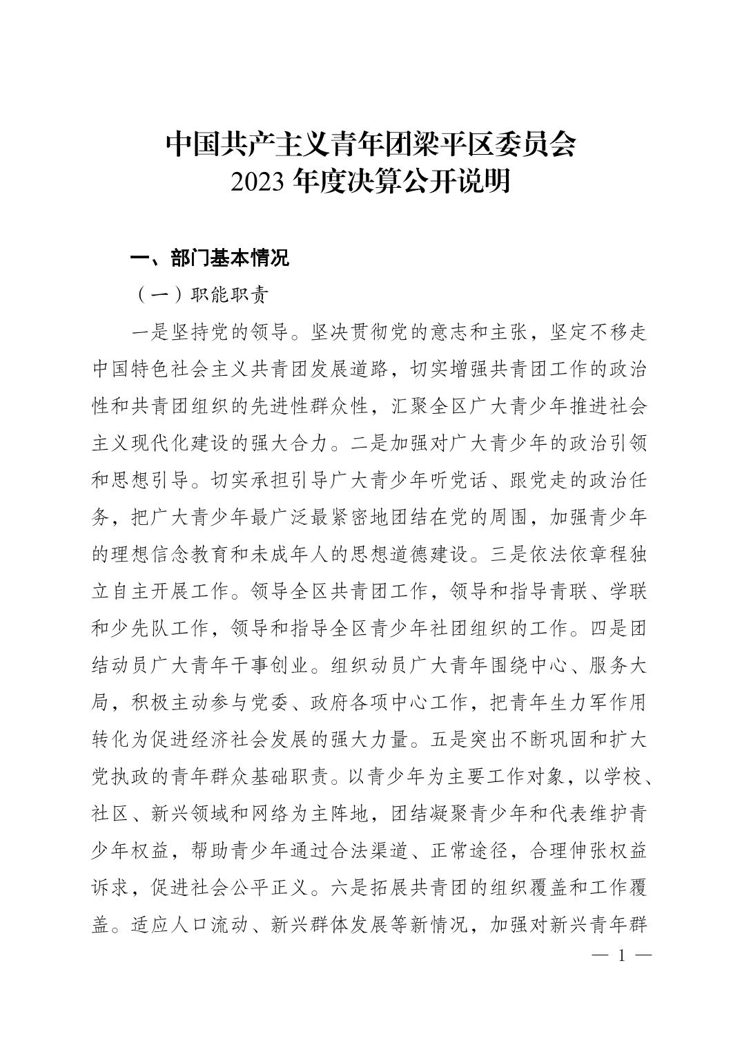 | 標(biāo)題 | 中國共產(chǎn)主義青年團(tuán)梁平區(qū)委員會2023年決算公開說明 |