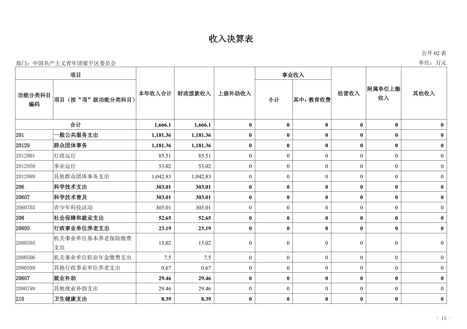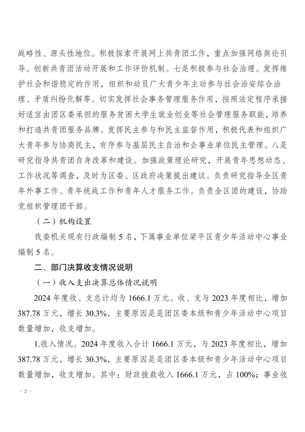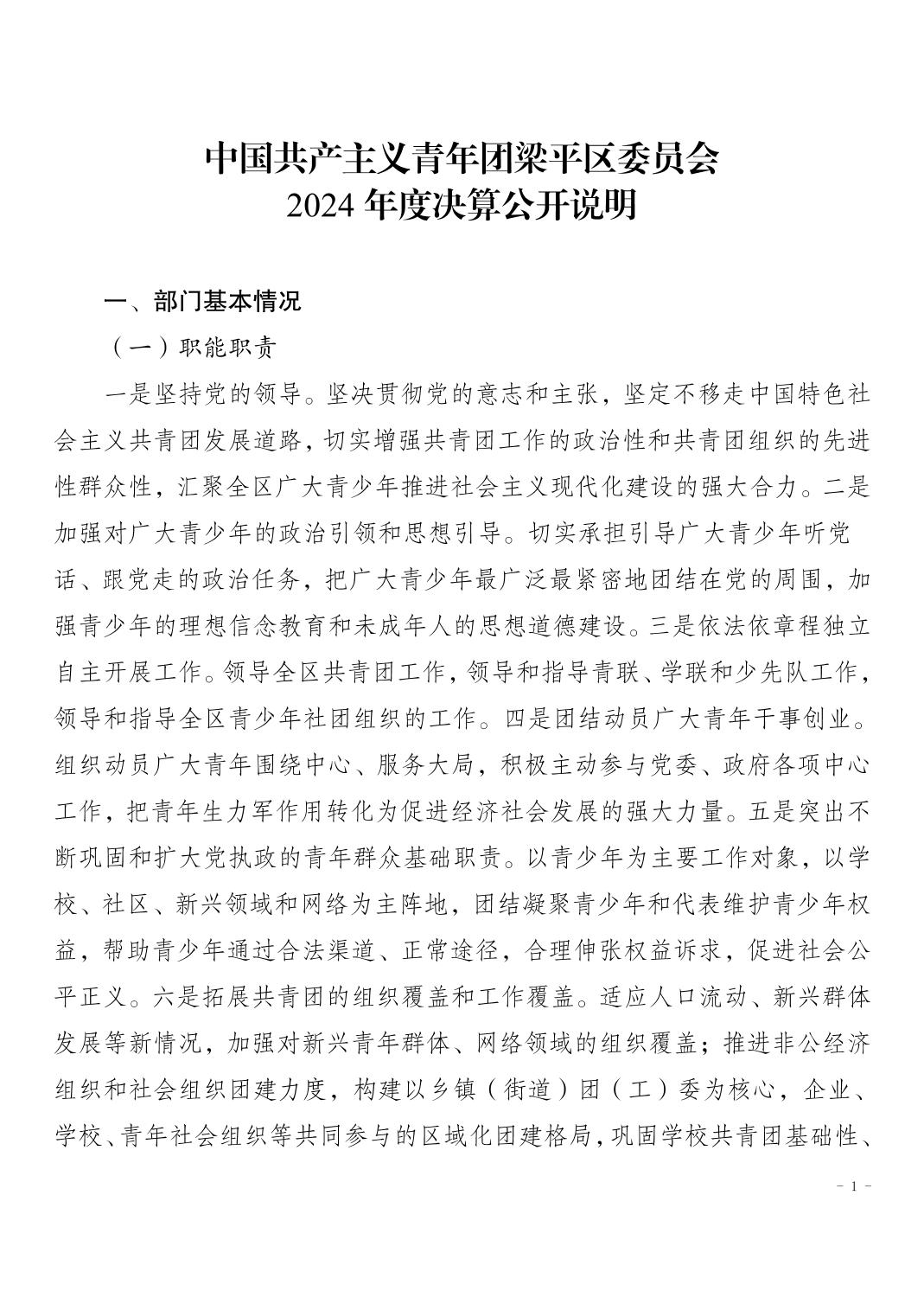 標題 中國共產主義青年團梁平區委員會 2024 年度決算公開說明