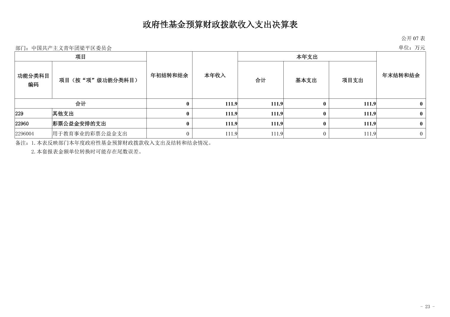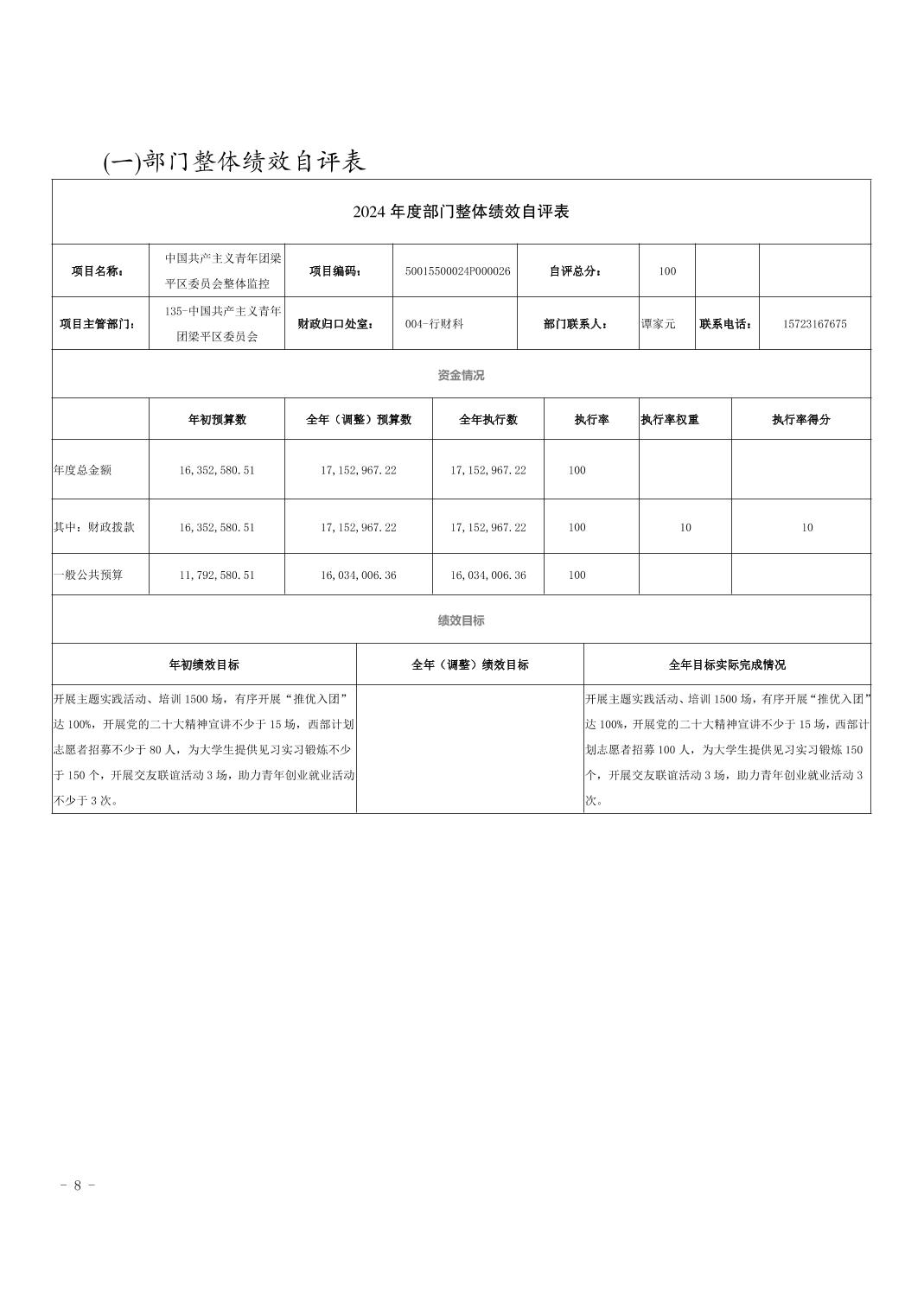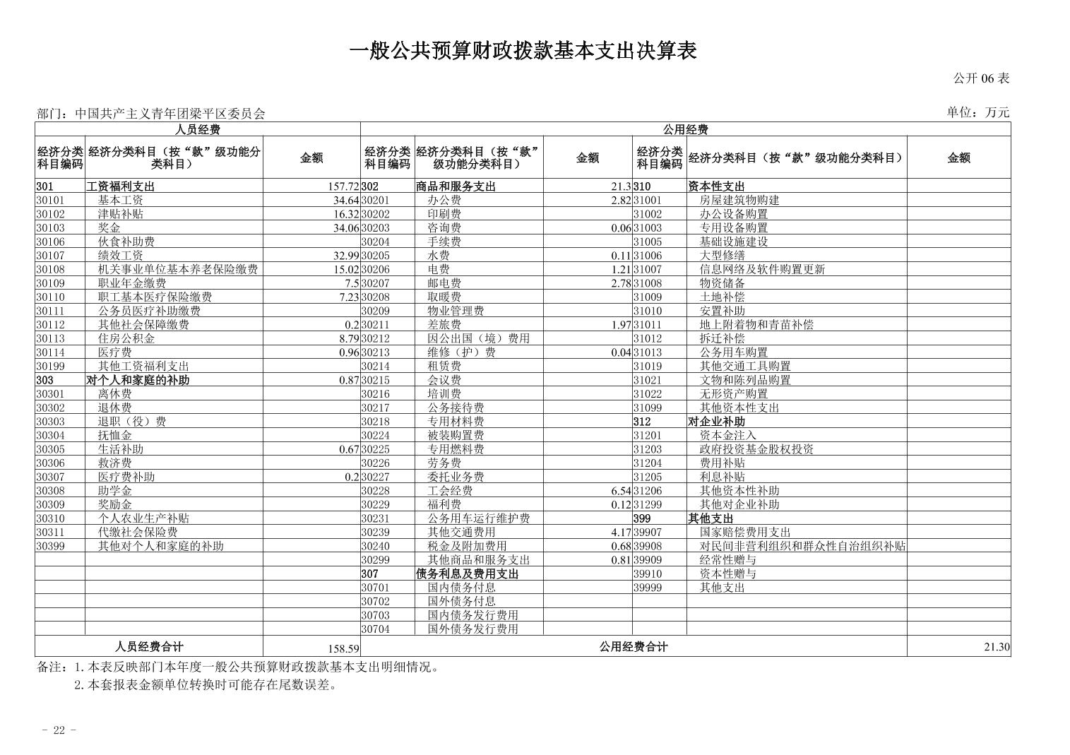 標題 中國共產主義青年團梁平區委員會 2024 年度決算公開說明