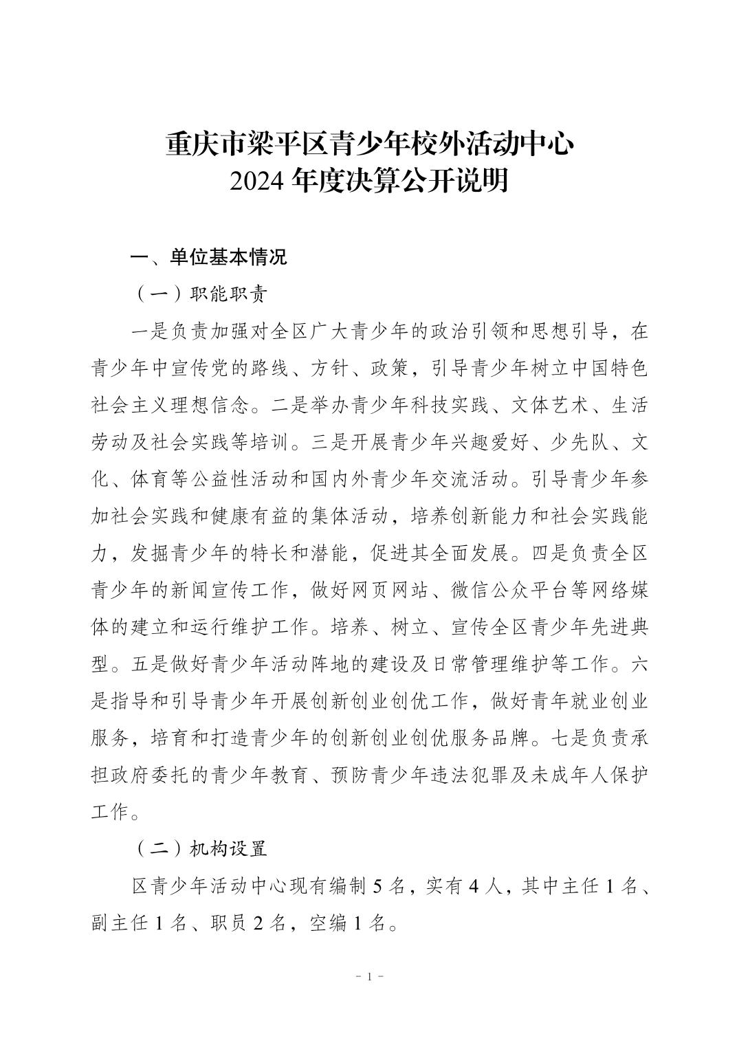 標(biāo)題 重慶市梁平區(qū)青少年校外活動中心 2024 年度決算公開說明