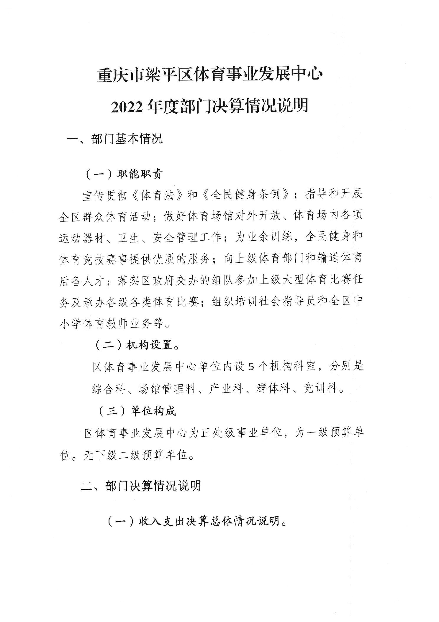 | 標題 | 重慶市梁平區體育事業發展中心2022年度部門決算情況說明 |