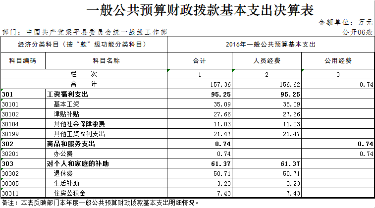本部門2016年度一般公共財(cái)政撥款基本支出157.36萬元。其中:人員經(jīng)費(fèi)156.62萬元,較上年增加43.24萬元,主要原因是工資提標(biāo)。人員經(jīng)費(fèi)用途主要包括基本工資、津貼補(bǔ)貼、獎(jiǎng)金、社會(huì)保障繳費(fèi)、車補(bǔ)、通訊補(bǔ)貼以、機(jī)關(guān)公用經(jīng)費(fèi)和運(yùn)行經(jīng)費(fèi)等。公用經(jīng)費(fèi)0.74萬元,較上年減少25.13萬元,主要原因是將大部分公用經(jīng)費(fèi)納入錄入人員經(jīng)費(fèi)中列支。