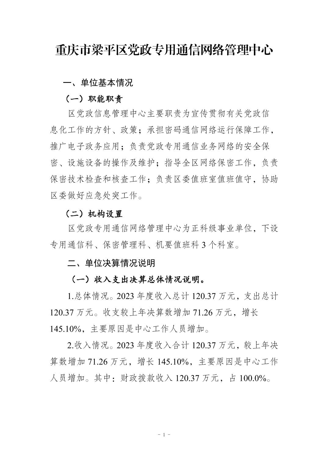 標題 重慶市梁平區黨政專用通信網絡管理中心2023年度決算公開說明